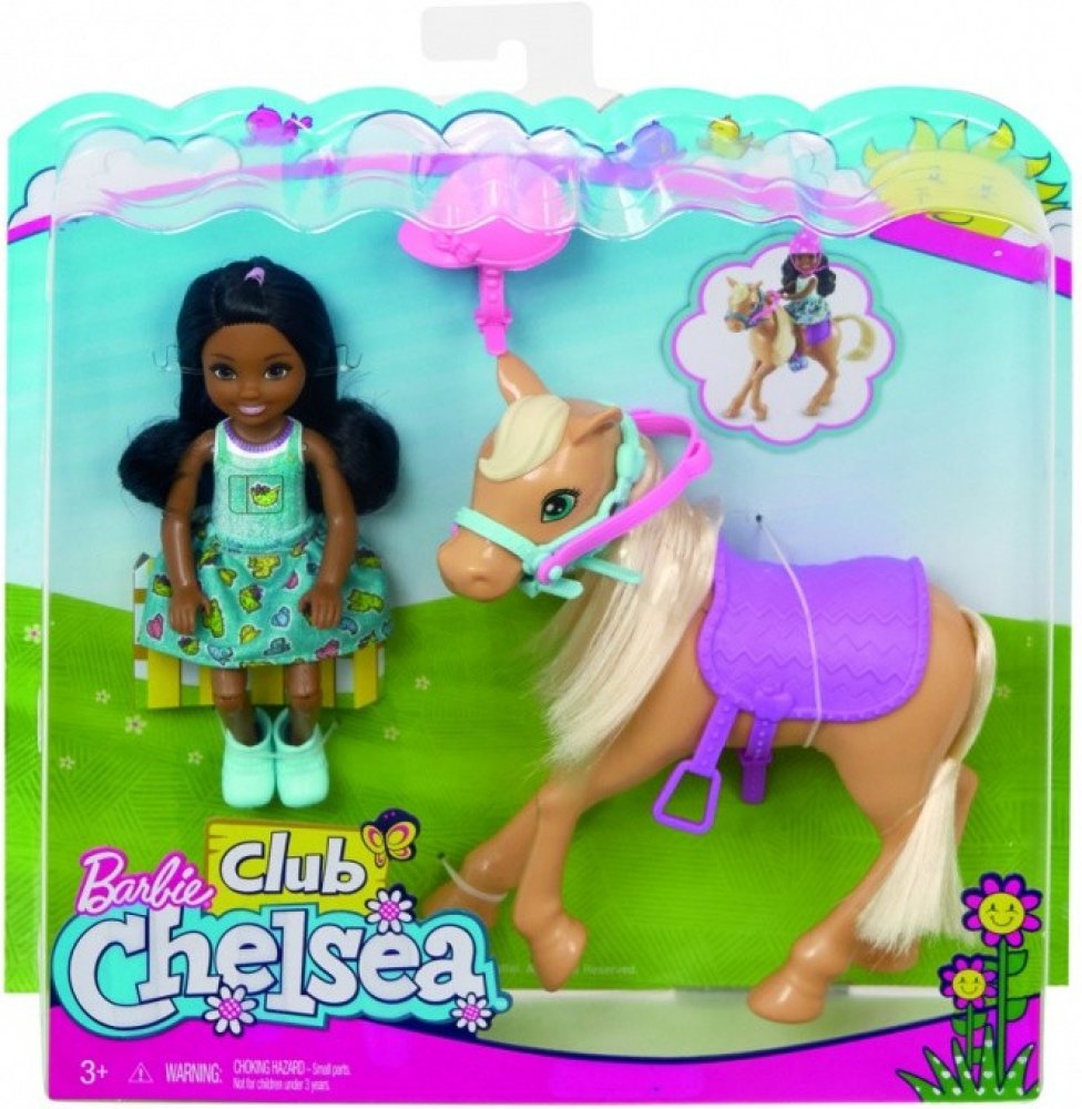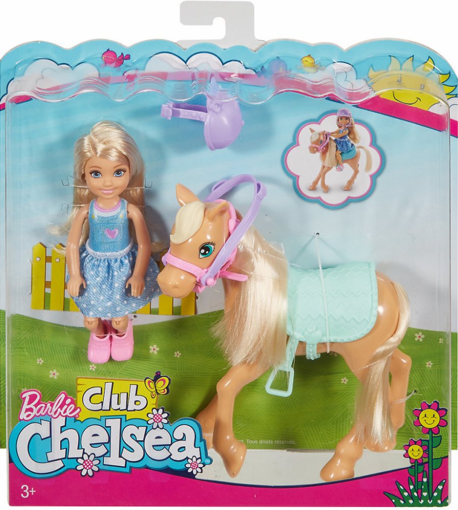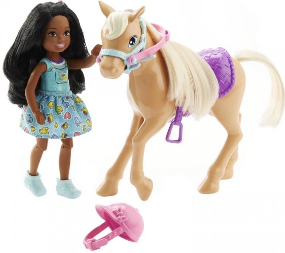 Sada panenky Chelsea™ s poníkem umožňuje dětem vyprávět nejrůznější příběhy o přátelství a dobrodružství. Panenka Chelsea™ má na sobě roztomilý obleček s helmou a rozkošný poník má sedlo a otěže. Panenka neumí samostatně stát. Barvy a vzhled výrobku se mohou lišit.