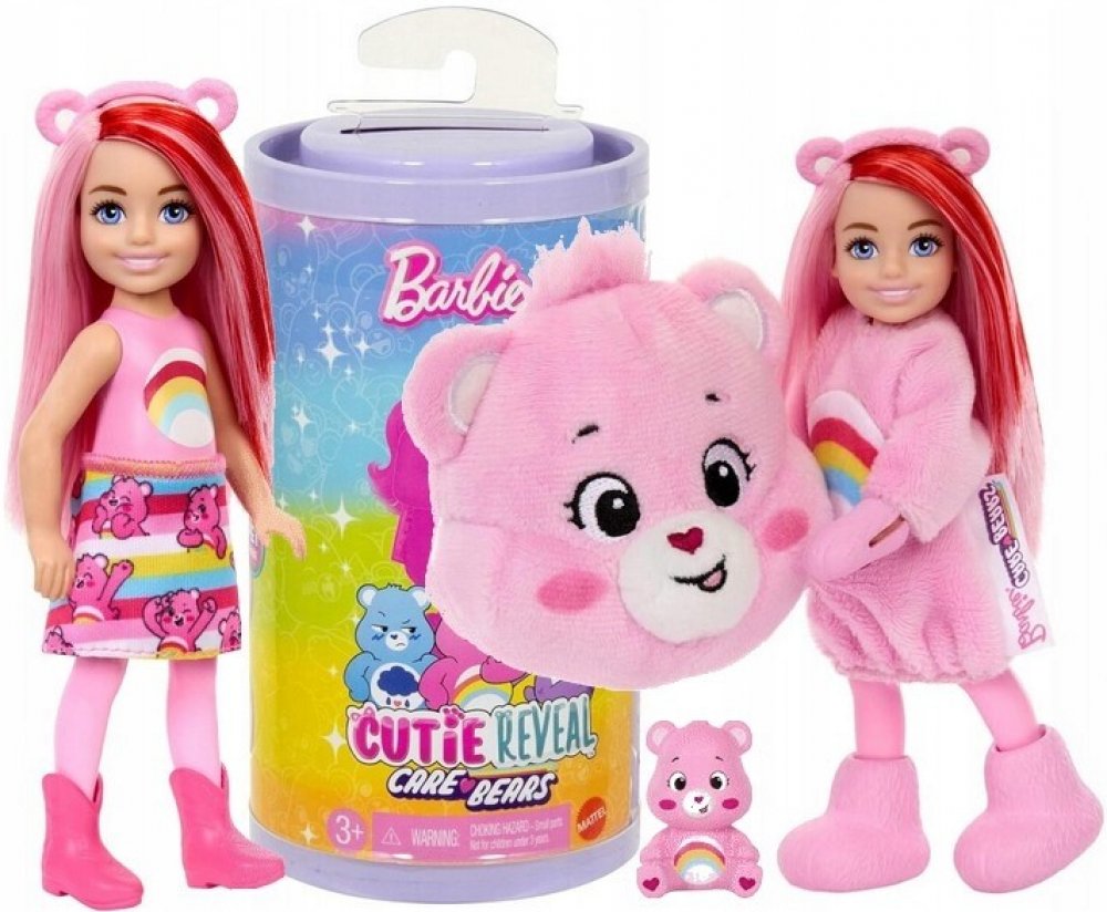 Panenky Barbie® Cutie Reveal™ Chelsea™ Starostliví medvídci přinášejí ten nejroztomilejší zážitek z rozbalování se 6 překvapeními! Objevte tři různé postavičky – veselého medvídka, rozverného medvídka nebo mrzutého medvídka. Sundejte rozkošný plyšový kostým a odhalte roztomilou panenku Chelsea™. Kterou panenku odhalíte? Objevte další překvapení, jako jsou sukýnka a medvídek. Otočte plyšový vršek a získáte oversize bundu a otočením hlavy kostýmu získáte pelíšek pro domácího mazlíčka. Děti si zamilují objevování všech překvapení v této roztomilé sérii. Panenky se prodávají samostatně dle aktuální nabídky. Panenky neumí stát samostatně. Barvy a vzhled výrobku se mohou lišit.
