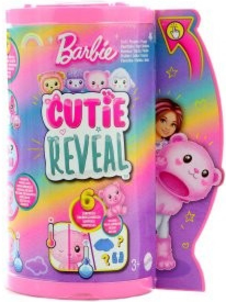Krásná Barbie Cutie Reveal Chelsea převlečena na roztomilé zvířátko. Rozbalte panenku Barbie a jejího mazlíčka a poté ji můžete obléci do plyšového kostýmu.