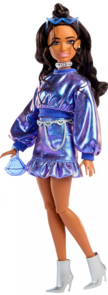 Hledáte Barbie Deluxe Metalické šaty ? U nás za skvělou cenu 548,00 Kč! Neváhejte a nakupte u profesionálů. Tyto panenky Barbie Deluxe Style posouvají „glamour“ na zcela novou úroveň díky oslnivým outfitům a doplňkům nové úrovně inspirovaným metalickou estetikou!Tato panenka Barbie maximálně ztvárňuje metalický vzhled v lesklém outfitu! Její ledově modrý krátký svetr se perfektně hodí k odpovídající volánové sukni.Má drobnou postavu a vlnité hnědé vlasy svázané do drdolu. Geometrické náušnice, třpytivý náhrdelník a pásek se srdíčky doplňují její super cool vzhled!