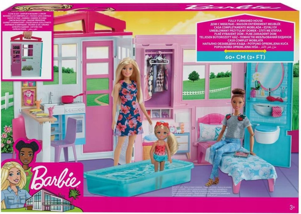 Po skončení hry stačí domeček zavřít, abyste ho mohli snadno a pohodlně uložit nebo si ho vzít s sebou na cesty. Panenka Barbie, oblečená v roztomilém oblečení, je připravena na všechna dobrodružství.