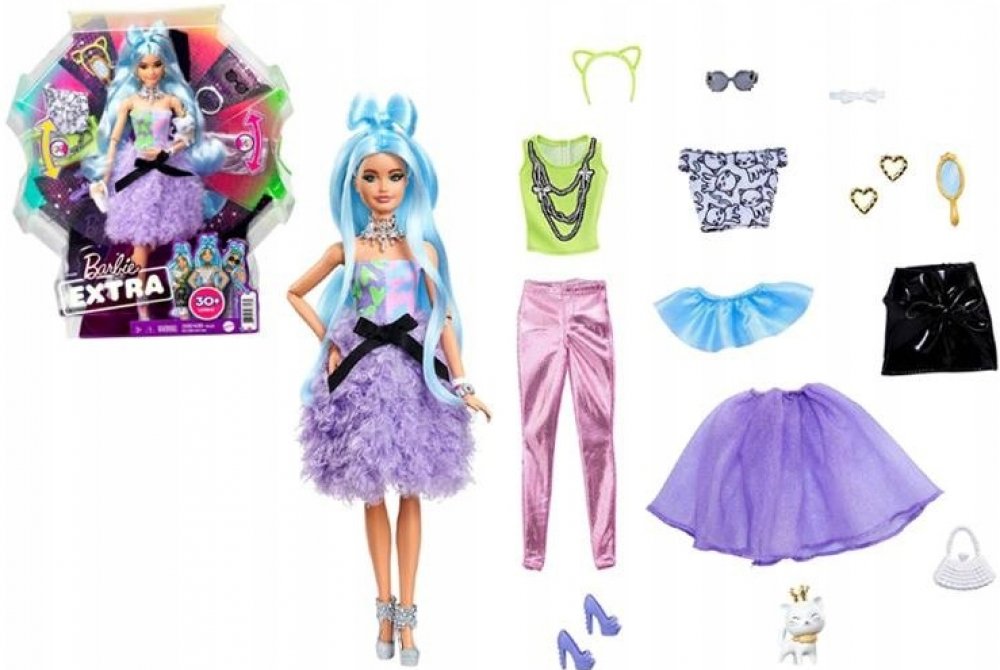 Každá panenka Barbie má svůj vlastní jedinečný styl. Každá sada obsahuje také jinou figurku zvířátka a všechny vypadají velmi roztomile a módně! Řada Barbie Extra umožňuje dětem vyjádřit se experimentováním se stylem a vzrušující zábavou při stylizaci panenek, které lze nastavit do různých póz.