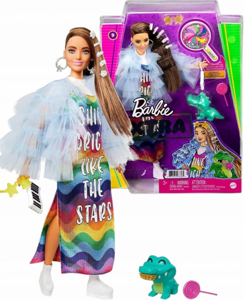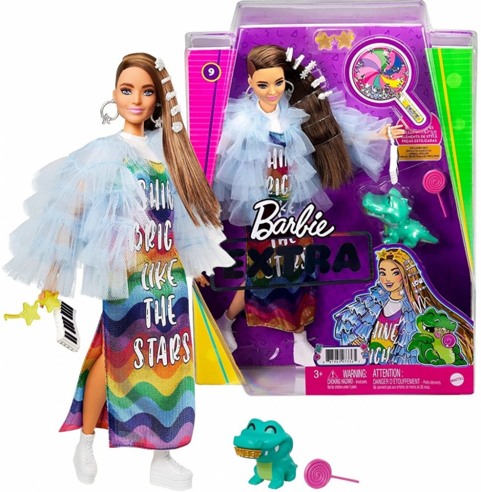 Všechny panenky Barbie® Extra jsou polohovatelné díky kloubovým tělům, obsahují domácí mazlíčky, kteří jsou také „extra“, a mají více než 10 nadupaných módních kousků a doplňků. Každá panenka je rovněž dodávána v jedinečném obalu – nejen strukturovaný zlomový rám s výraznými barvami, ale i každá krabička bude obsahovat jedinečný hmatový prvek, jako je látka z bundy panenky Barbie®, konfety uvnitř ikony a stříbrná holografická fólie v logu. Obsahuje panenku Barbie® Extra oblečenou do módních kousků a doplňků spolu s domácími mazlíčky a doplňky pro domácí mazlíčky.