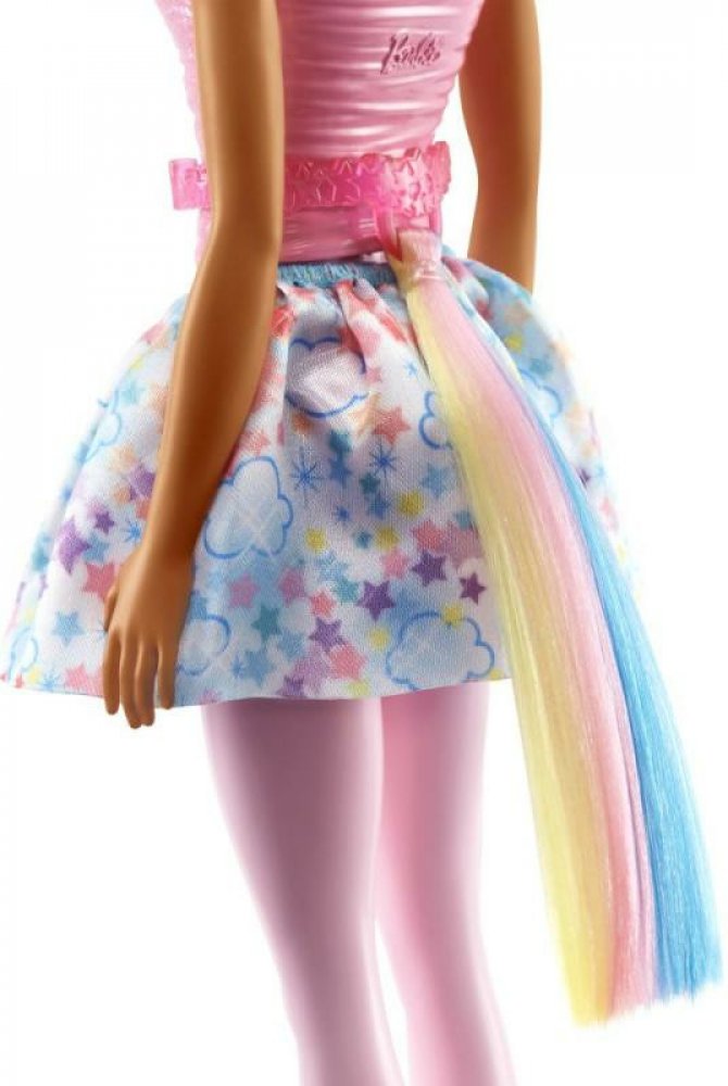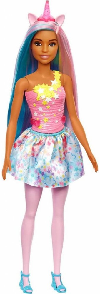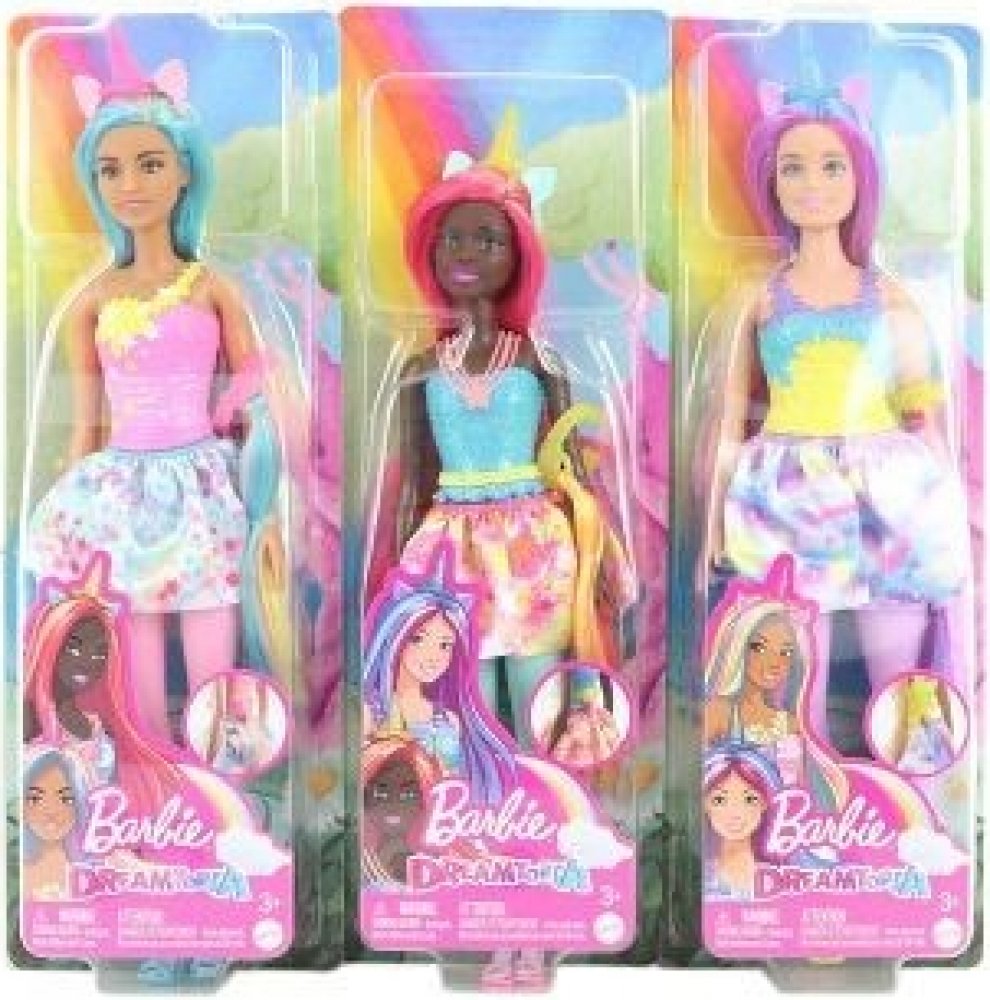 Vstupte do světa magického vyprávění s Barbie Dreamtopia jednorožci! Každá panenka má duhově zářivý vzhled, kompletní s vícebarevnými fantazijními vlasy, bleskovým korzetem a odnímatelnou sukní s nápadně tištěným motivem květin nebo duhy. Díky připevnitelným ocasům a bleskovým jednorožcovým čelenkám s roztomilými ušima si děti mohou proměnit své Barbie panenky na své oblíbené pohádkové stvoření!Barevná obuv a natřené punčochy inspirují ještě více fantazie. S živými vzhledy a fantastickou transformací Barbie Dreamtopia jednorožci podněcují nekonečné vyprávění příběhů pro děti od 3 let věku a výše. Každá panenka se prodává samostatně, dle dostupnosti. Panenky nejsou schopné stát samy. Barvy a dekorace se mohou lišit.Klíčové vlastnosti Magický design s duhovými vlasy a barevnými motivy Odnímatelná sukně s tiskem květin nebo duhy Připevnitelný ocas a bleskové čelenky jednorožců Barevná obuv a natřené punčochy pro větší zábavu Podporuje kreativitu a vyprávění příběhů Vhodné pro děti od 3 let a výše