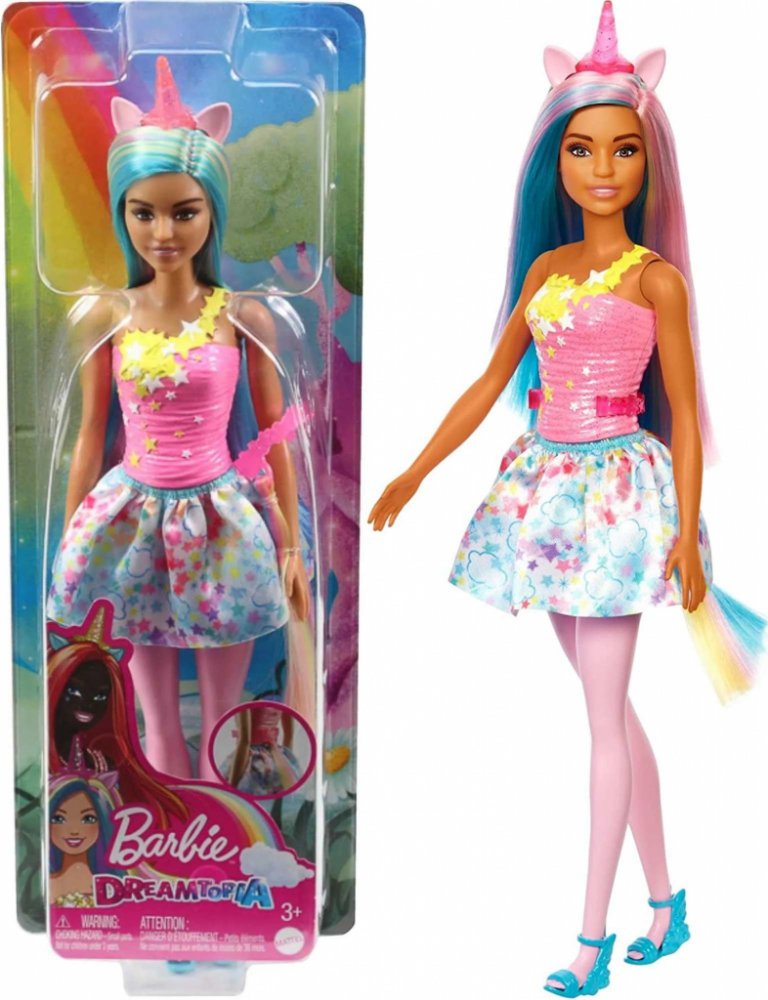 Vstup do světa kouzelných příběhů s panenkami Barbie™ Dreamtopia Unicorn! Tato panenka Barbie® má duhový vzhled s růžovými a žlutými fantasy vlasy, třpytivým živůtkem a odnímatelnou sukní s hvězdným potiskem. Díky připínacímu ocasu a třpytivé čelence jednorožce s rozkošnýma ušima mohou děti panenku Barbie® proměnit ve svou oblíbenou pohádkovou bytost! Barevné boty a malované punčocháče inspirují k...