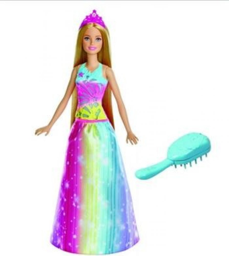 skutečností! Jakmile začneš česat princezniny neskutečně dlouhé vlasy pomocí přiloženého magnetického hřebenu, její živůtek se rozzáří a rozezní se hudba. Panenka Barbie® má i dokonalý obleček