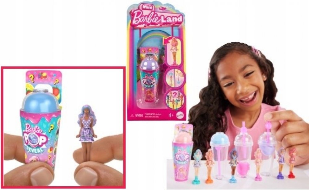 Vstupte do světa panenky Barbie® s Mini BarbieLandem - místem, kde si můžete i s malou hračkou představovat velké věci! S panenkami Mini BarbieLand Pop Reveal vás čeká velká zábava i překvapení při rozbalování. Odšroubujte víčko na mini kelímku s nápojem a šťouchněte brčkem do smyslové hmoty, abyste si užili zábavu s mačkáním. Po vyjmutí směsi se objeví mini panenka Barbie! Kterou panenku odhalíte...