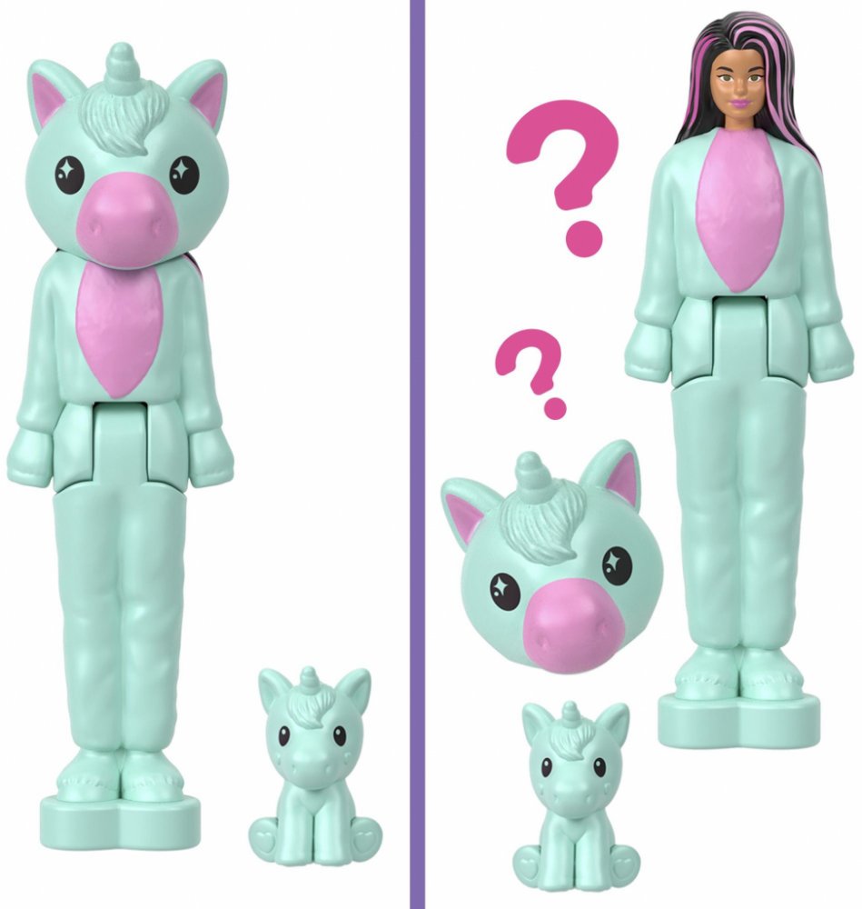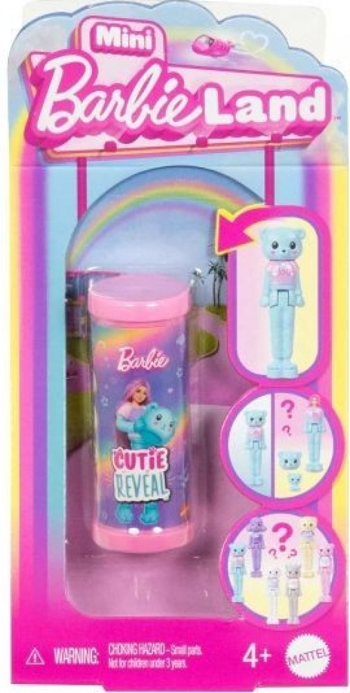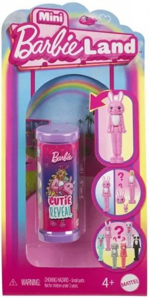 Vstupte do světa panenky Barbie® s Mini BarbieLandem - místem, kde si můžete i s malou hračkou představovat velké věci! S panenkami Mini BarbieLand Cutie Reveal vás čeká velká zábava i překvapení při rozbalování. Otevřete malou tubu, vytáhněte mini panenku v kostýmu zvířecího plyšáka, sundejte hlavu a odhalte vzhled panenky - je tak roztomilá! Součástí je i odpovídající mini zvířátko. Kterou panenku odhalíte? Každá 4 cm velká panenka se ohýbá v pase a stojí na podstavci ve tvaru srdce.