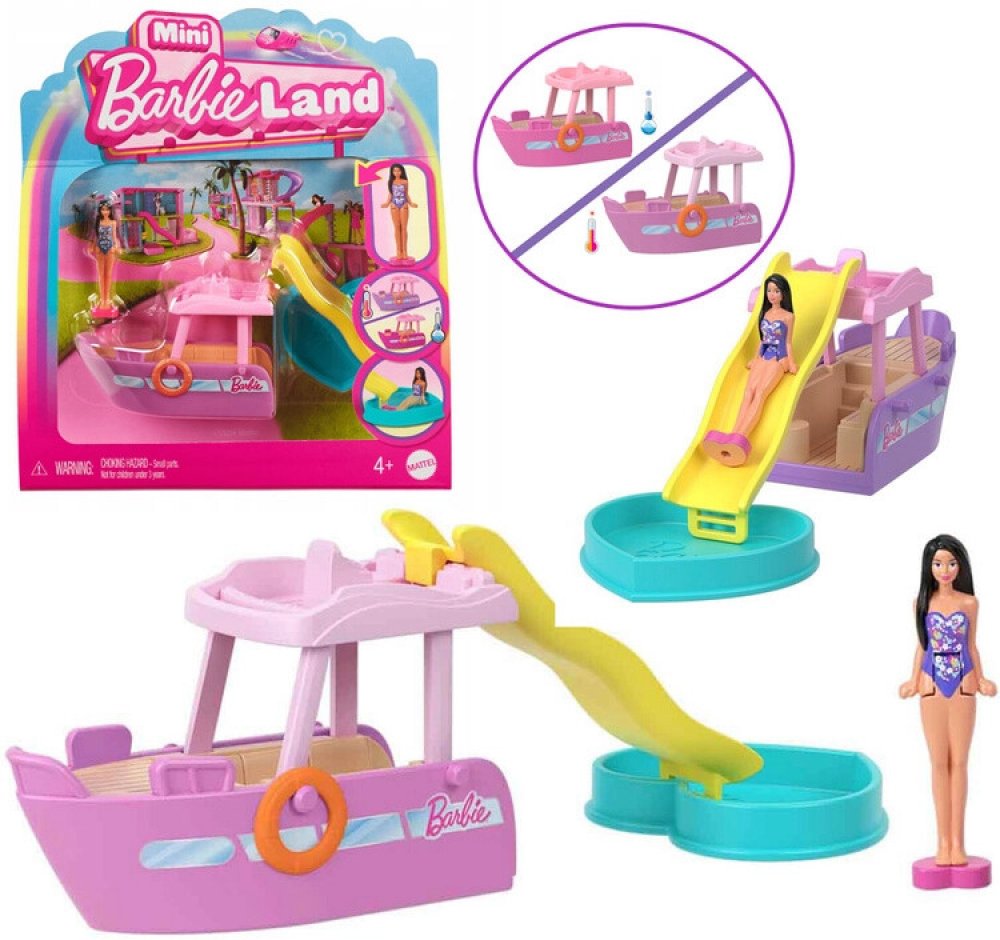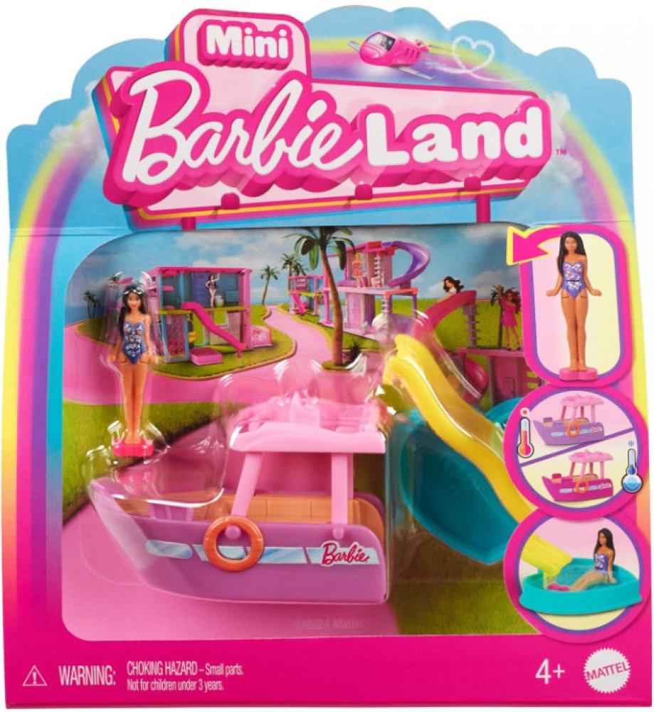 Vydejte se do vln Mini BarbieLandu s lodí snů - zmenšenou na miniaturní velikost a s překvapením v podobě možnosti změny barvy! Součástí je také téměř 4 cm velká panenka Barbie® s ohebným pasem, která může sedět a "řídit" člun. Vydejte se do vln Mini BarbieLandu s lodí snů - zmenšenou na miniaturní velikost a s překvapením v podobě možnosti změny barvy! Součástí je také téměř 4 cm velká panenka Barbie® s ohebným pasem, která může sedět a "řídit" člun.