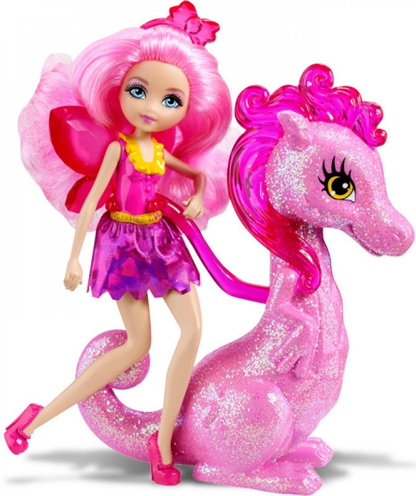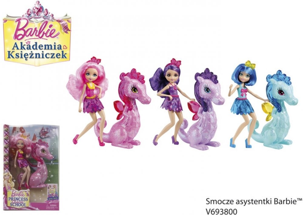 Z nového filmu Barbie™ a Škola pro princezny vítáme pomocnice princezen, mini víly, a jejich draky poseté flitry. Každou módní mini vílu lze připevnit na draka; prodávají se s křídly připomínajícími drahokamy, které může nosit ona i drak. Křídla lze libovolně připínat různým panenkám/drakům v kolekci. Každou vílu lze připnout na draka. Balení obsahuje panenku víly, draka, svorku pro připnutí panen...