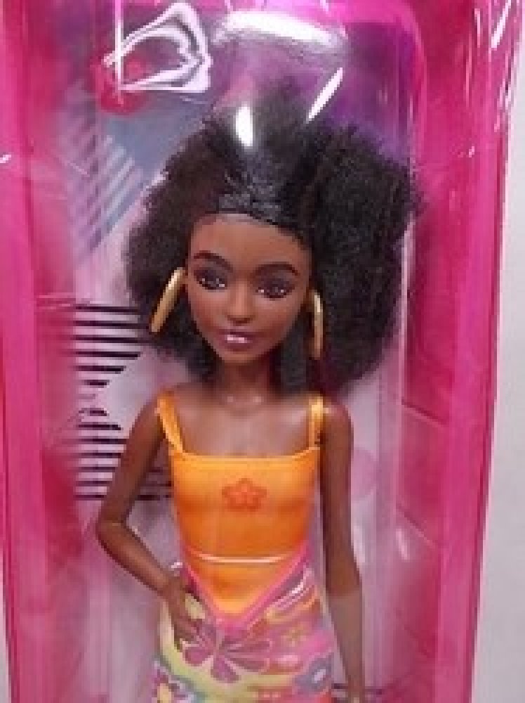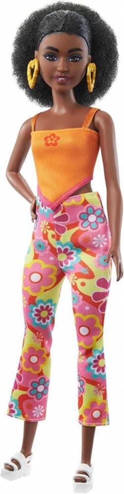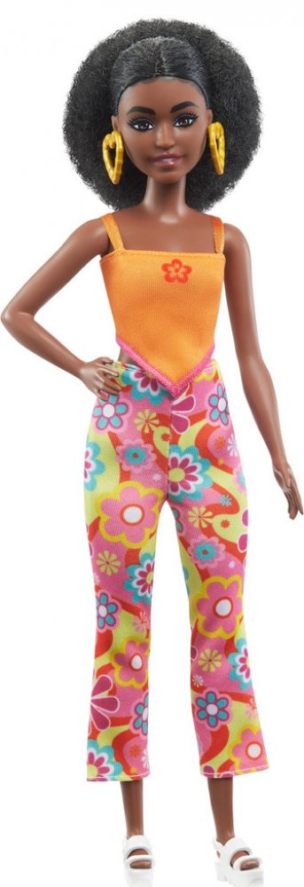 Tato rozmanitá řada Barbie® Fashionistas™, navržená tak, aby odrážela svět, který dnes děti vidí, představuje jasné a trendy styly, které poskytují nekonečné možnosti vyprávění. Tato panenka Barbie® má drobnou postavu a přirozené černé kadeře! Super roztomilé doplňky, jako jsou mohutné zlaté obruče ve tvaru srdce a sandály na platformě, rozzáří její osobnost. V barevném outfitu inspirovaném Y2K je na vrcholu dnešních trendů! Její oranžový top má saténová ramínka a lem šátku, zatímco její úzké kalhoty jsou zábavným výrazem s nápadným květinovým potiskem.