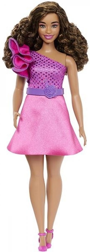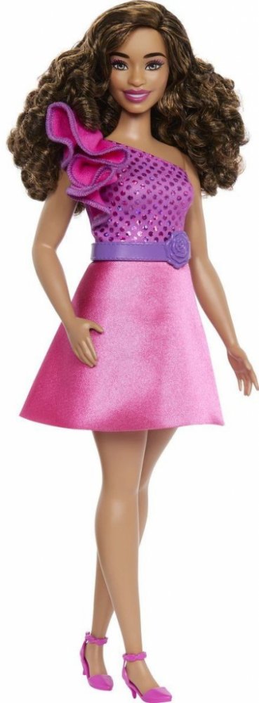 Barbie Modelka lesklé šaty s volánkem HRH22