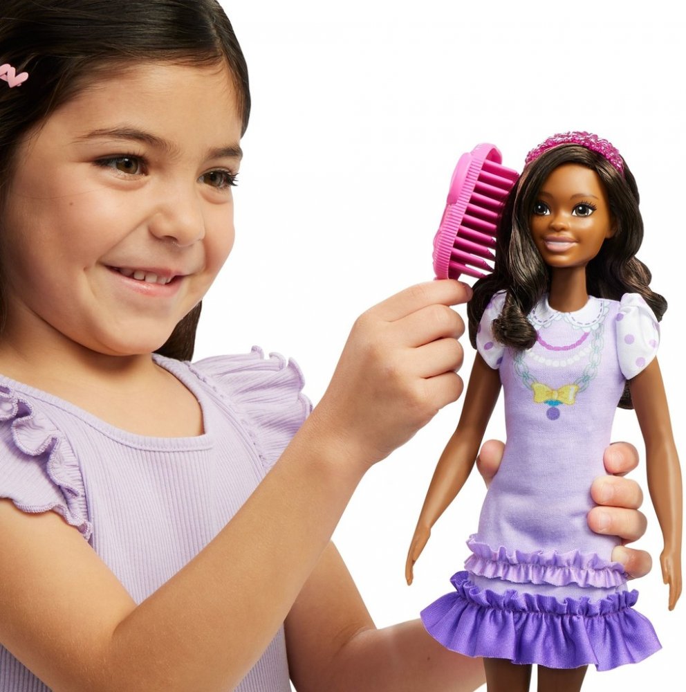 Panenky Moje První Barbie potěší dlouhými vlasy vynikajícími pro styling. Velký kartáč, který je součástí sady, pomáhá česat a uspořádat vlasy, což současně procvičuje obratnost a učí děti starat se o sebe.