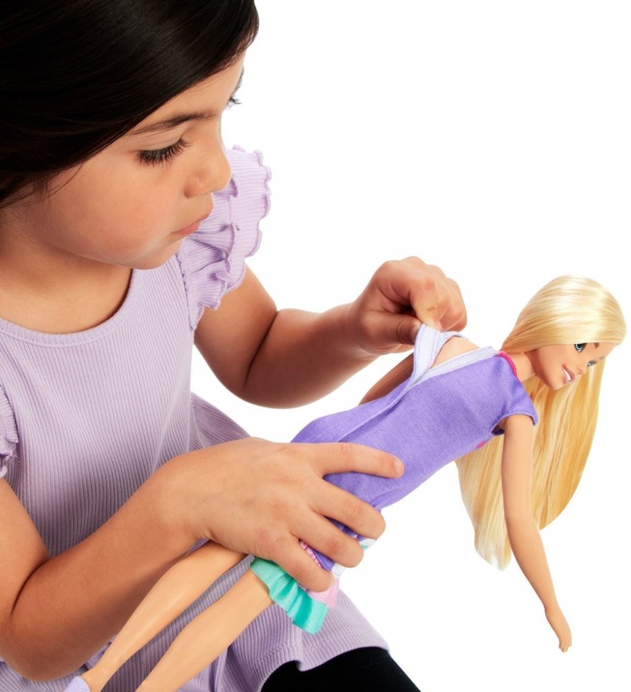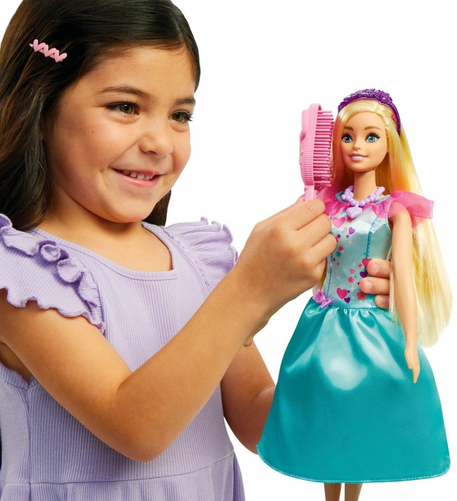 Moje první Barbie® má dlouhé vlasy, které jsou ideální pro česání. Děti mohou panence pomocí velkého kartáče česat a upravovat vlasy, což pomáhá rozvíjet zručnost.