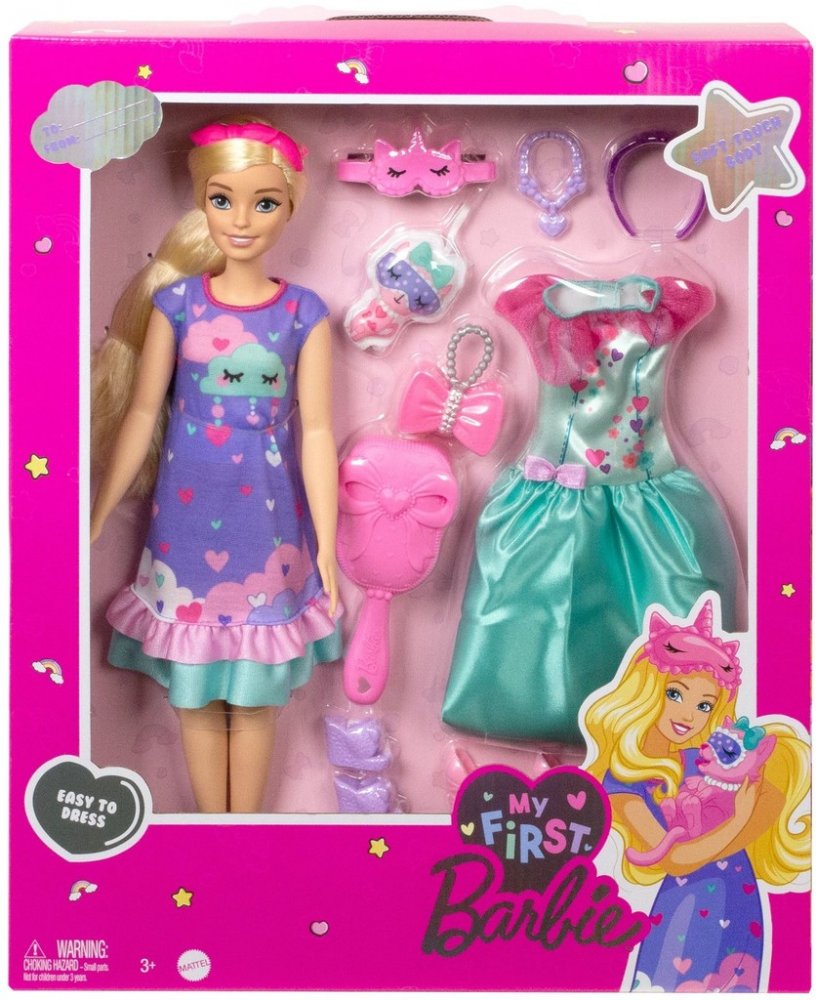 Moje první Barbie™ panenka den a noc "Malibu" Roberts přichází se dvěma módními outfity a spoustou barevných doplňků a nabízí dvě dětmi oblíbená témata hraní.