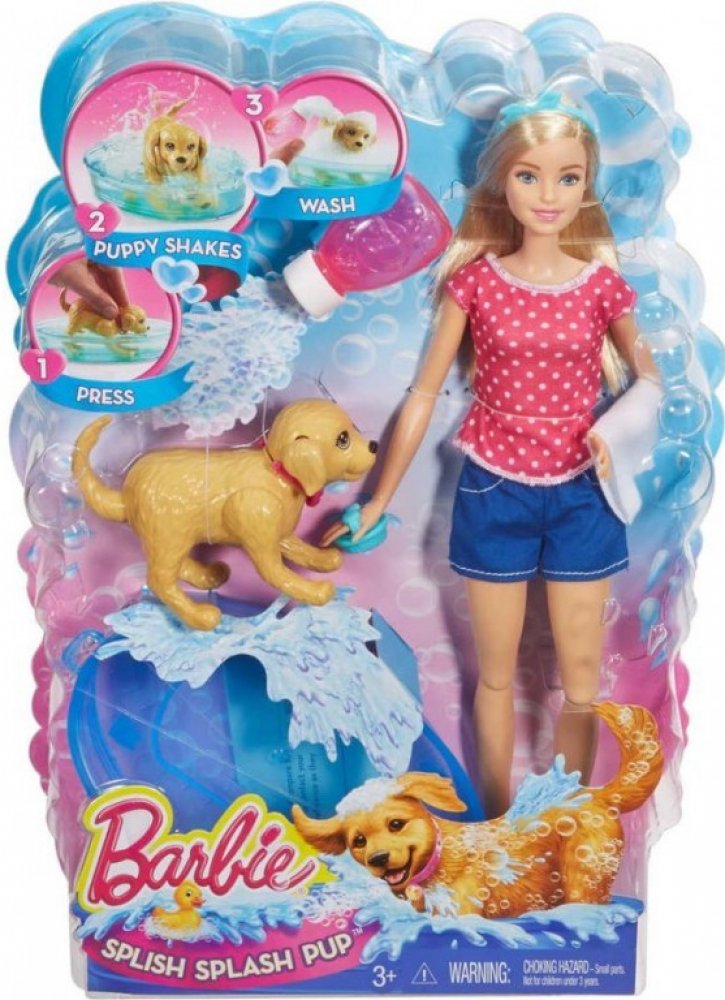 MATTEL Barbie koupe pejskaS touto sadou bude koupání pejska zábava. Lahvička na mýdlo, vanička - která lze naplnit vodou. Do vaničky se vejde pejsek a ty můžeš začít. Zmáčkni jeho záda a pejsek se otřese. Vrtí ocáskem jako praví pejsek. Pěkně ho omyj a opláchni mýdlo. Panenka Barbie je oblečena do trička se vzory, kraťas ve stylu džínů a vlasy má ozdobené mašlí. Pomoz jí pejska osušit. Dívky budou panence Barbie pomáhat pejska omývat.• Sada obsahuje Barbie panenku, vaničku, figurku pejska, kartáč a ručník pro zvířátko• Od 3 let• Pozor Nevhodné pro děti mladších 3 let. Obsahuje malé části, které by mohly být spolknuty. Nebezpečí udušení!Udělejte radost sobě nebo svým známým originálním dárkem. .