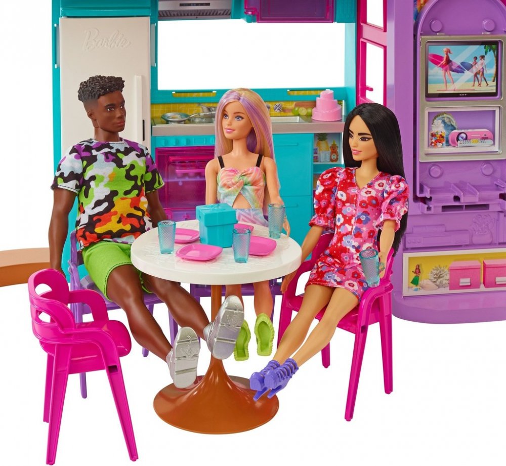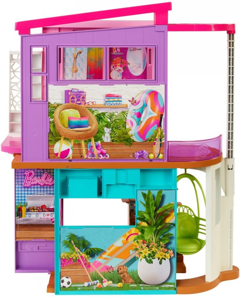 Tento Barbie® Párty dům v Malibu inspiruje k nekonečným hrám díky dvěma patrům a šesti hracím zónám včetně ložnice, koupelny, kuchyně, jídelny, obývacího pokoje a šatny. Děti se mohou rovnou nastěhovat a vyprávět jakýkoli příběh díky více než 30 předmětům, a to včetně zábavného vybavení, jako jsou židle, jídelní stůl s připojitelnou deskou a další. Zábavné detaily a moderní povrchové úpravy otevírají dveře všem druhům vyprávěcích her, stylová houpací židle se může pohybovat nahoru a dolů a sloužit jako výtah a celá sada se dá složit pro snadný úklid a přenášení. Panenky se prodávají samostatně. Barvy a vzhled výrobku se mohou lišit.