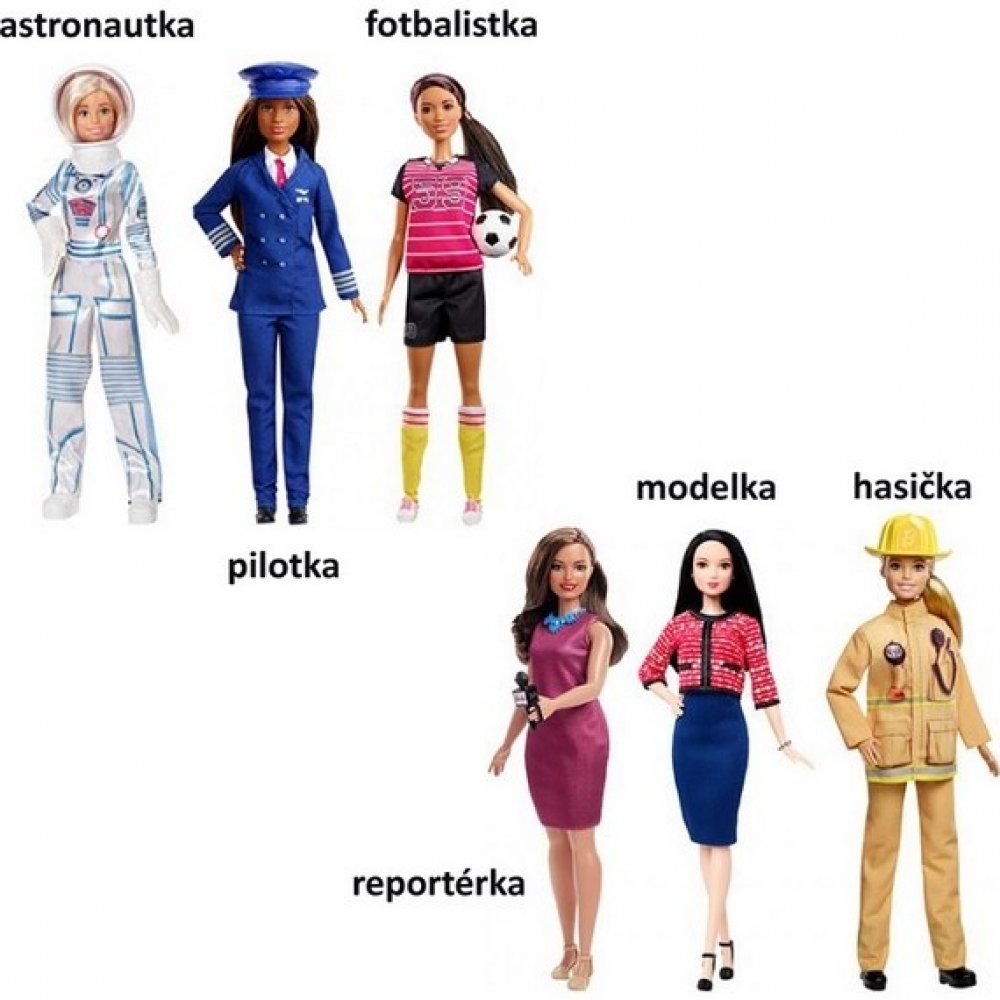 Panenka Barbie přichází za holčičkami v podobě své profese. Ani při její práci jí nechybí šarm a elegantní oblečení. Vybrat si můžete z více druhů, kosmonautka, fotbalistka, letuška a dalších.