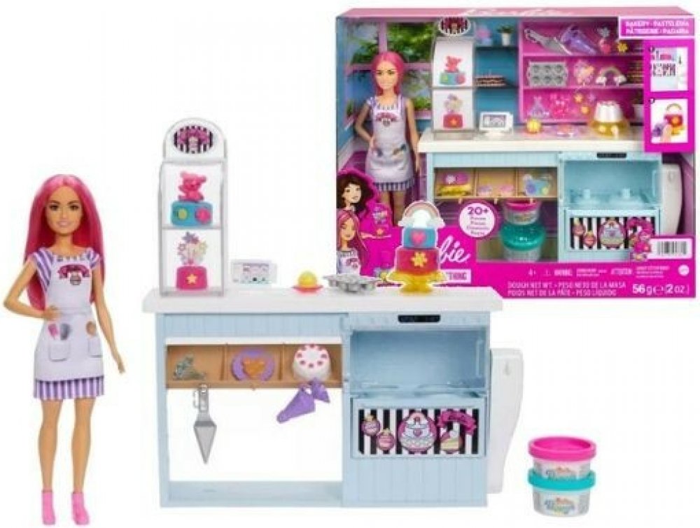 Panenka Barbie pomůže dětem vyrobit dort a ozdobit je pomocí jedinečného příslušenství pro pečení! Tato kreativní sada je dokonalým receptem na zábavu, obsahuje tři kontejnery s plastovou hmotou v růžové, modré a s přidáním konfet, díky kterým si můžete vytvořit své vlastní požitky. Kuchyňský ostrov je rozdělen do tří částí, ve kterých mohou děti péct, zdobit a prezentovat své dorty. Součástí sady je také více než 10 příslušenství. Mladí cukráři mohou pomoci panenkám Barbie péct dorty s jedním nebo dvěma patry, které rostou v troubě, zdobí strany pomocí rotujících vzorů, zdobí pečivo jedinečnými dekoracemi a prodávají je a zabalí do krabice nebo servírují jednotlivé kousky na talíři. Set je vhodný pro dětské ruce a podporuje kreativní hru. Děti budou milovat nespočet příležitostí vyjádřit se a vyprávět příběhy!