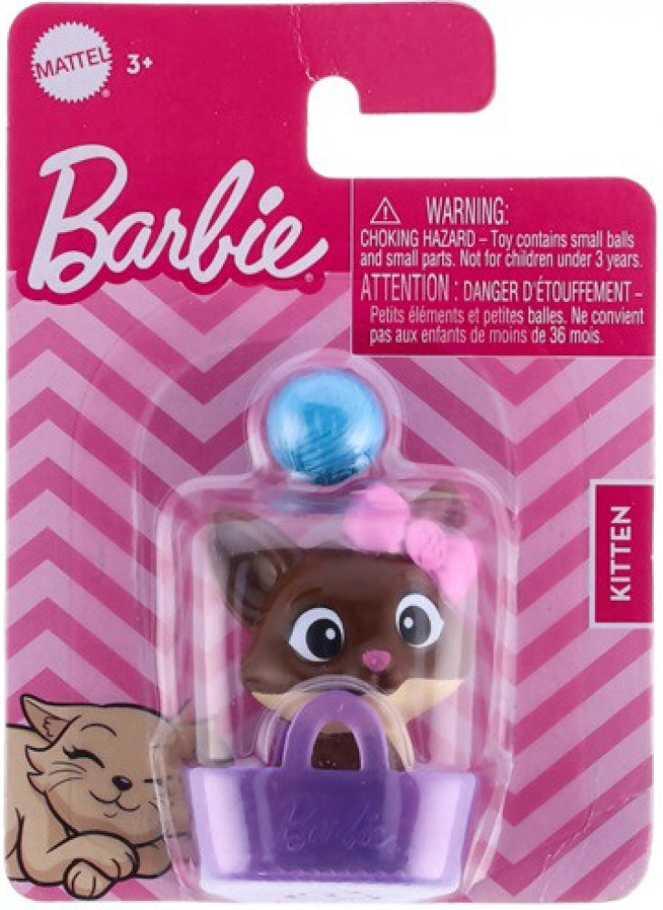 Mattel Barbie figurky mazlíčků 8x11,5 cm, balení obsahuje úžasnou figurku kočičky v košíčku a klubíčko, krásná originální zvířátka, lze použít jako doplněk pro panenky Barbie nebo sbírat jako samostatné figurky