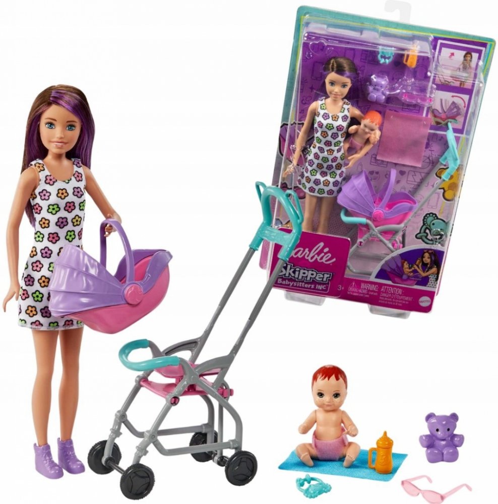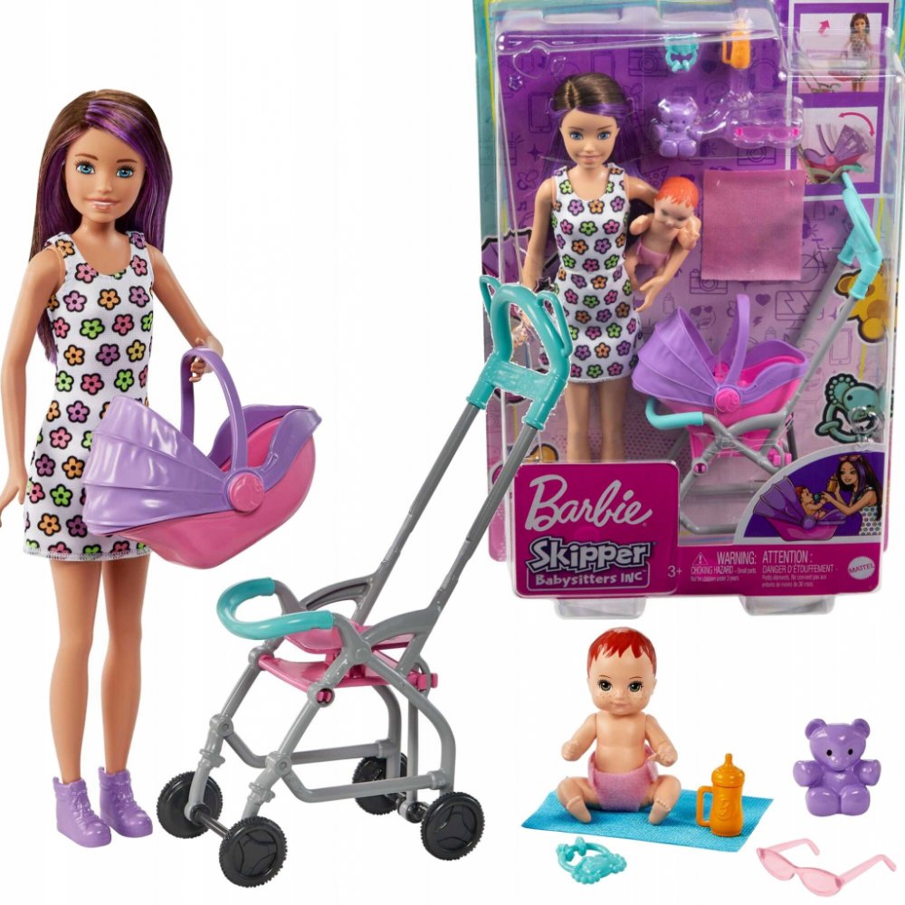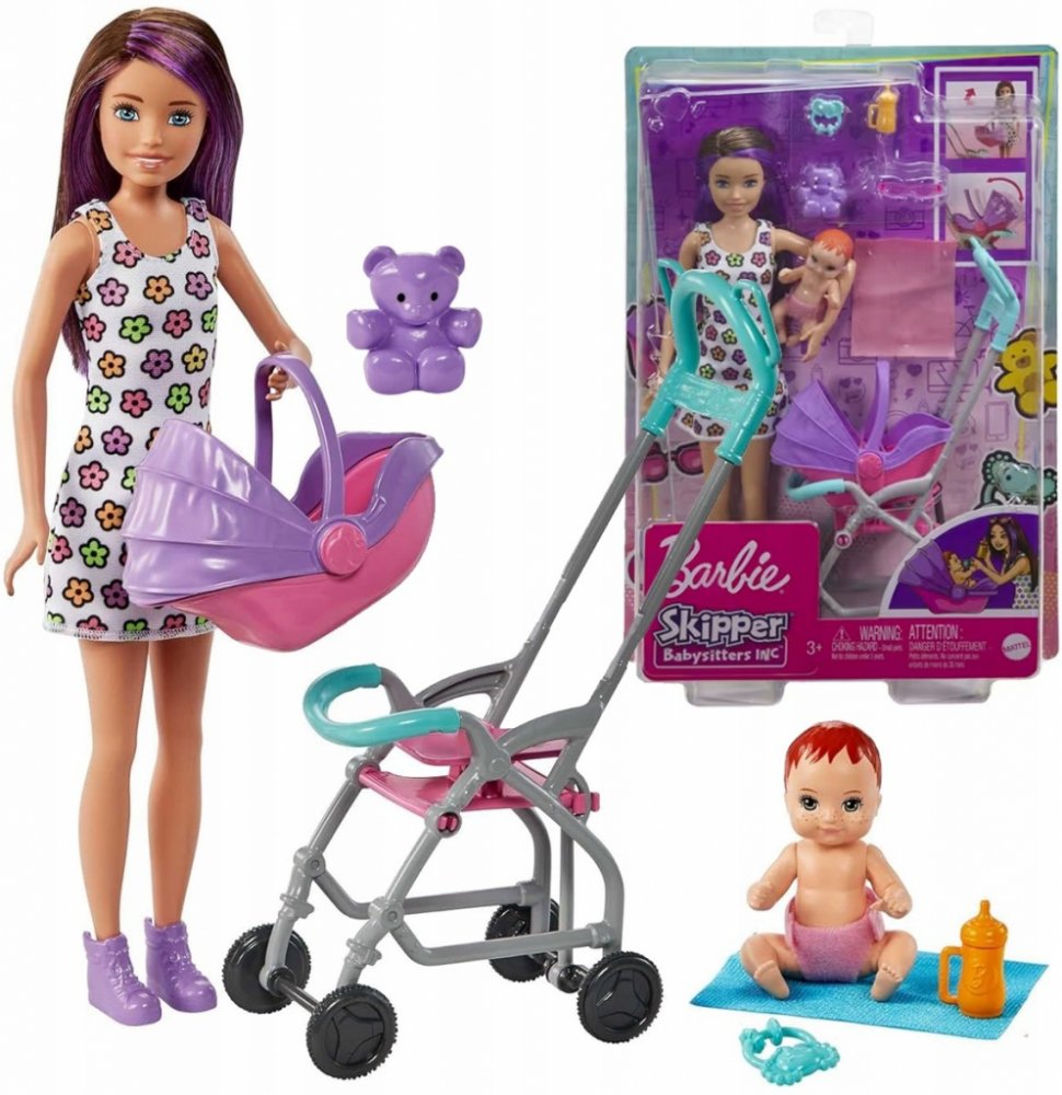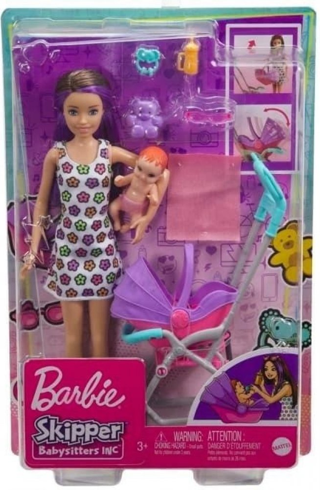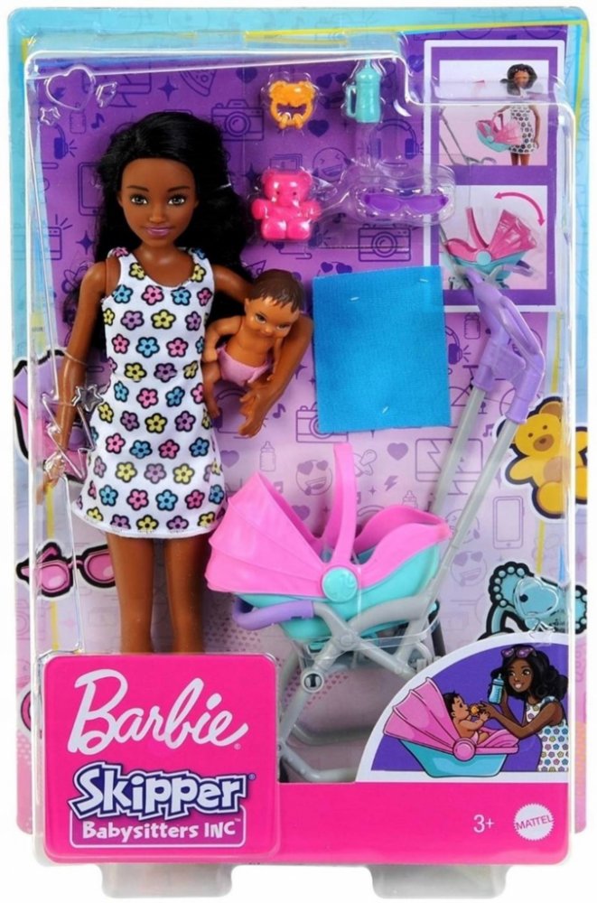 Soupravy na hraní z řady Barbie Skipper Nanny Club umožňují dětem rozvíjet jejich smysl pro péči. S touto jedinečnou sadou mohou děti pomáhat chůvě starat se o batole tím, že ho převážejí v kočárku, který se při tlačení houpe. S doplňky, jako je plyšový medvídek, lahvička, chrastítko a dětská deka, má panenka chůva vše, co potřebuje k dobré péči o své děťátko. Děti od 3 let mohou sbírat i další pa...