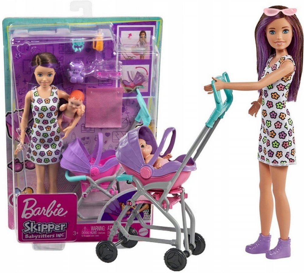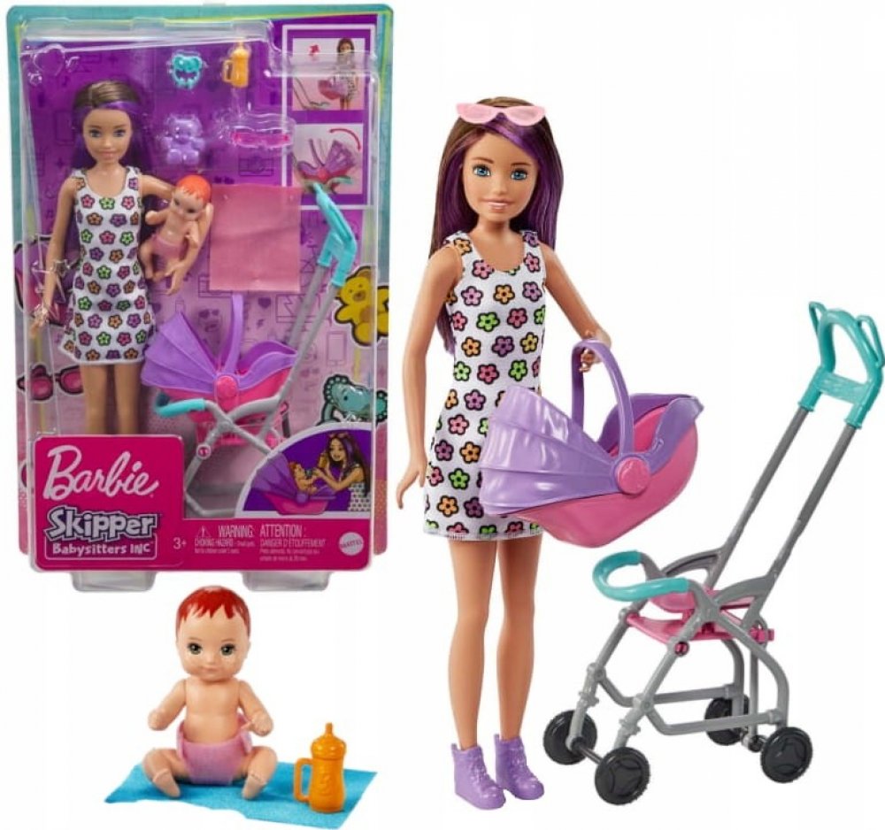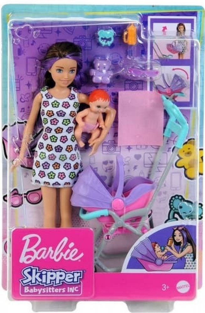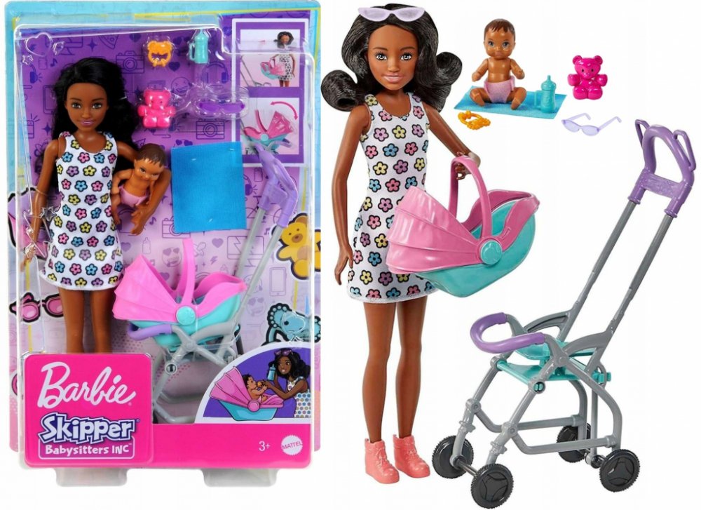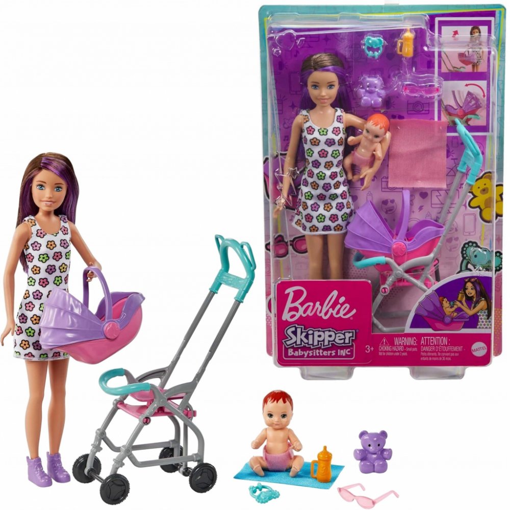 Soupravy na hraní z řady Barbie Skipper Nanny Club umožňují dětem rozvíjet jejich smysl pro péči. S touto jedinečnou sadou mohou děti pomáhat chůvě starat se o batole tím, že ho převážejí v kočárku, který se při tlačení houpe. S doplňky, jako je plyšový medvídek, lahvička, chrastítko a dětská deka, má panenka chůva vše, co potřebuje k dobré péči o své děťátko. Děti od 3 let mohou sbírat i další pa...