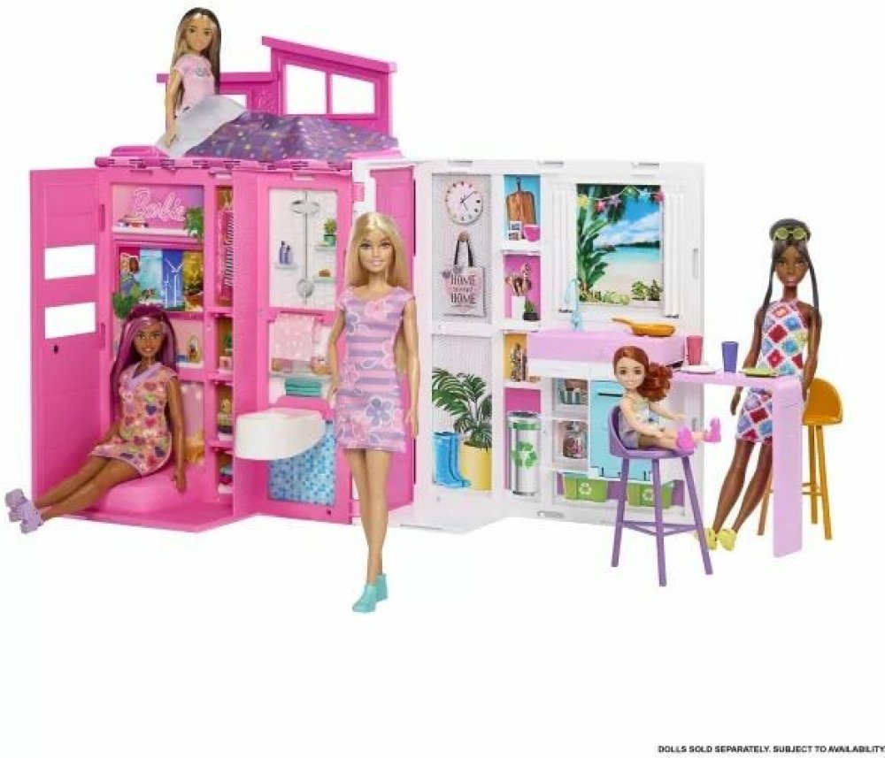 Tento barevný a praktický domeček inspiruje spoustu dobrodružství a příběhů. Sada obsahuje panenku Barbie a roztomilé doplňky, kterými mohou děti podle svých představ ozdobit dům.