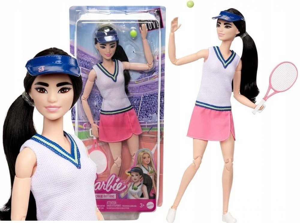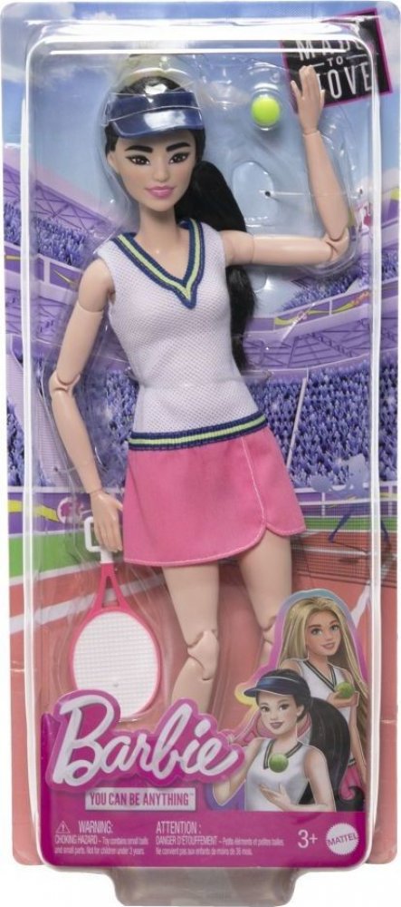 Kariéra Barbie. Panenka tenistka HKT73Panenka Barbie Made to Move Tenistka se ráda zapojí do hry. Díky 22 ohýbacím bodům můžeš provádět podání a voleje a získávat body přiloženým míčkem. Panenka je připravena vyrazit na kurt a je oblečena do sportovního oblečení: trička se sukní, sportovních bot a kšiltu. Díky panenkám Barbie z řady Kariéra můžeš popustit uzdu svým snům a být tím, kým chceš být. P...