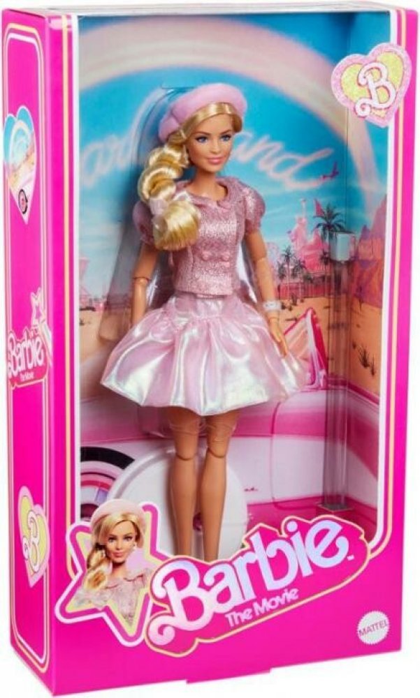 Objevte elegantní sbírkovou panenku BARBIE inspirovanou filmem, která okouzlí třpytivými růžovými šaty, stylovým růžovým baretem a vysokými podpatky. Díky ohybným kloubům je skvělá pro pózování, vystavení i kreativní hru – ideální pro děti od 3 let i nadšené sběratele.