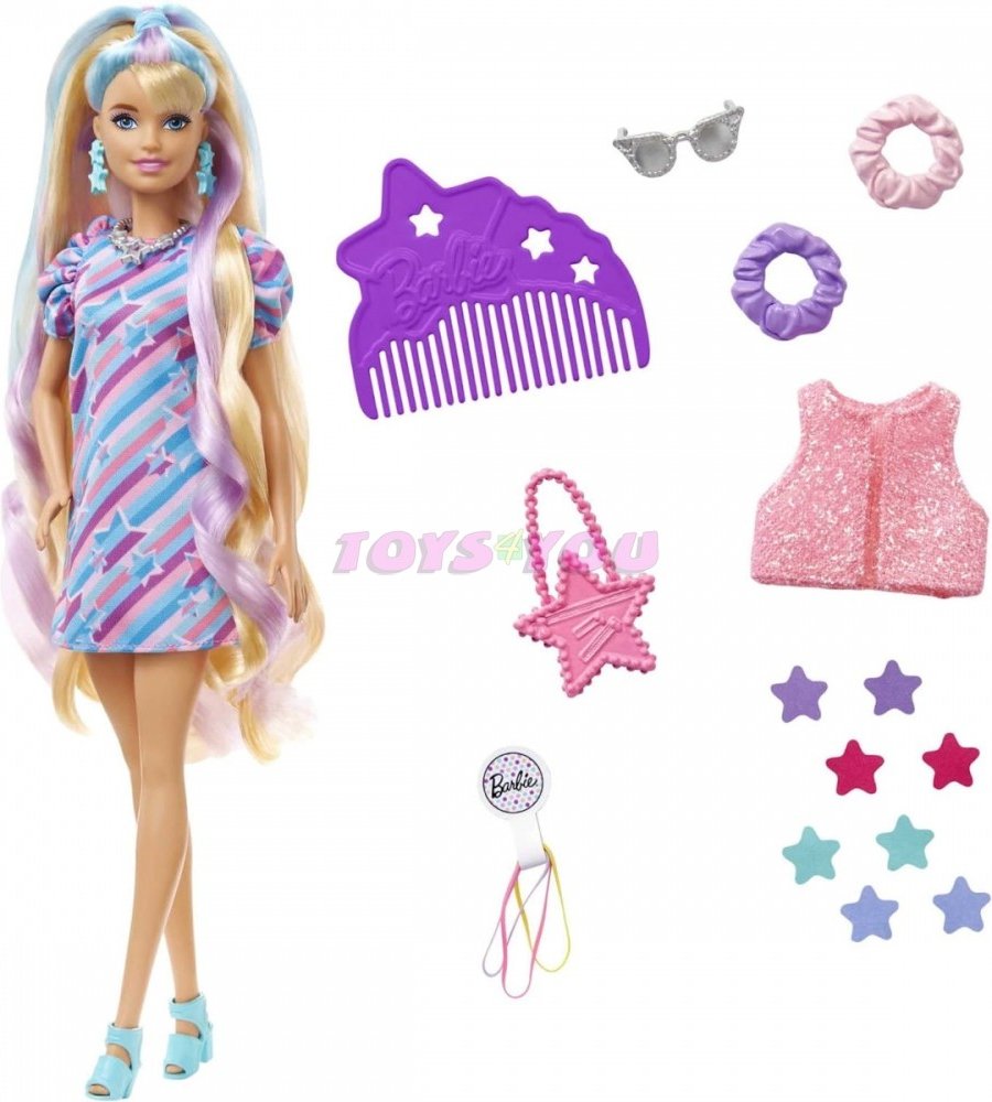 Panenky Barbie® Fantastické vlasové kreace jsou inspirovány nejprodávanější panenkou Barbie® Totally Hair, která poprvé debutovala před 30 lety. V této kolekci jsou čtyři různé panenky, z nichž každá má svůj vlastní odlišný účes, texturu vlasů, módní vzhled a styl! Každá panenka má 21 cm extra dlouhé vlasy a dodává se s více než 15 dalšími doplňky, včetně 8 klipů pro změnu barvy vlasů, stylingových doplňků a módních kousků. Děti si zamilují vytváření mnoha různých účesů a nekonečné možnosti stylingu s těmito panenkami Barbie®! Panenky neumí samostatně stát. Barvy a vzhled výrobku se mohou lišit.