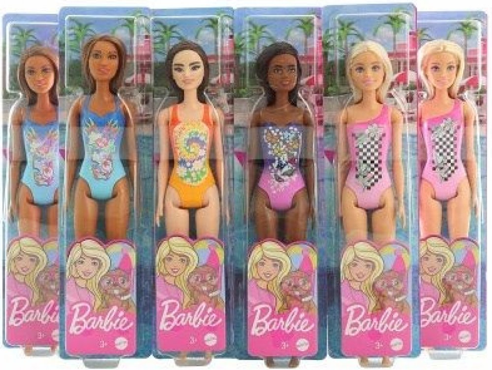 Panenky Barbie® V plavkách inspirují děti k tomu, aby se ponořily do vyprávění příběhů! Každá panenka má na sobě plavky, které oslavují současné trendy pestrými barvami a odvážným designem. Jedinečný vzhled vybízí k zábavě na slunci, dobrodružstvím s vodní tématikou a mnohému dalšímu! Balení obsahuje panenku v plavkách. Prodávají se samostatně dle aktuální nabídky. Panenky neumí samostatně stát. B...