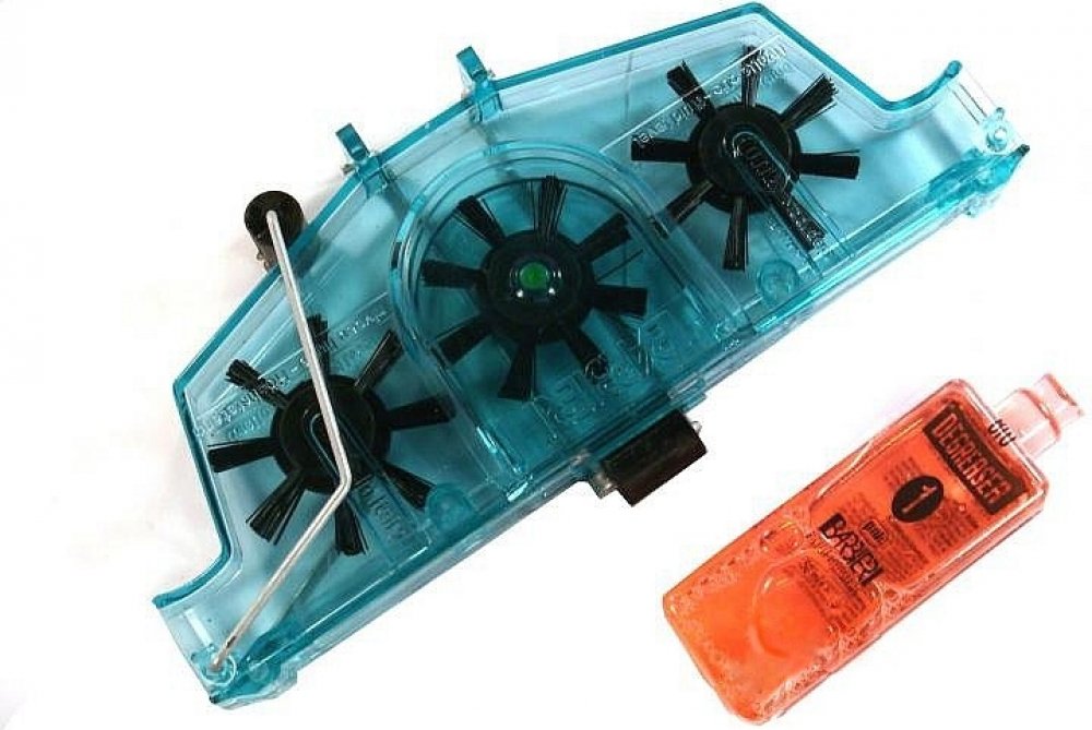Pračka Barbieri na čištění řetězu k dosažení vynikajícího výsledku během několika minut.Pračka Barbieri na čištění řetězu k dosažení vynikajícího výsledku během několika minut. Doporučujeme používat velmi často, neboť čistý a dobře promazaný řetěz vydrží i několikrát déle než řetěz bez údržby. Ovládání je velice jednoduché.Není potřeba sundávat řetěz z kola. Vyrobeno z plastu. Součástí tohoto bale...