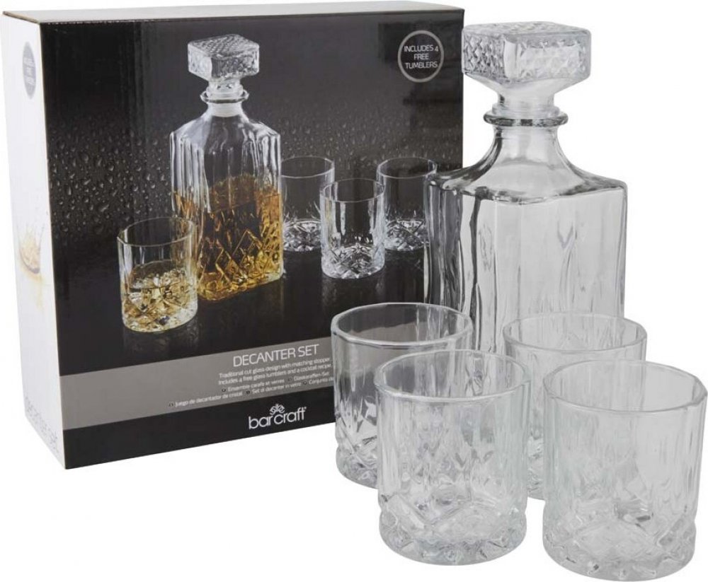 Sada obsahuje vše, co potřebujete k popíjení, vychutnávání a uchovávání whisky nebo rumu. K dispozici je skleněná karafa o objemu 900 ml a čtyři sklenice Old Fashioned o objemu 200 ml. Každá z nich je vyrobena z vysoce kvalitního skla s tradičními detaily z broušeného skla. To jim dodává majestátní vzhled, který jistě dodá šmrnc domácímu baru nebo skříňce na nápoje.