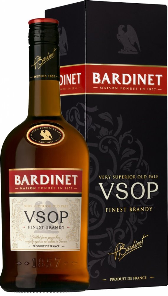 Prémiové brandy. Bardinet Brandy VSOP je unikátní brandy namíchané z kvalitních eaux-de-vie francouzských vinic s elegantní kulatou chutí a silným, dlouhým dozvukem. Je charakteristické zlatavě jantarovým zbarvení, jemným voňavým aroma, perfektním sladěním vjemu ovoce a dřevitosti v chuti a bohatou vyzrálostí. Bardinet Brandy VSOP patří mezi tří hlavní leadery francouzských brandy na světě.