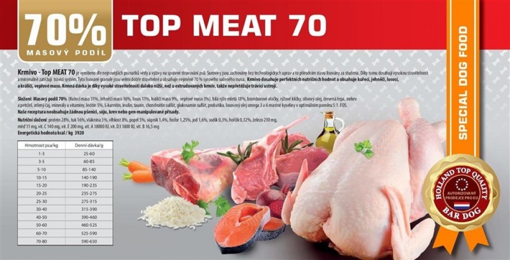 Bardog Lisované granule za studena Top Meat 70 32 kg