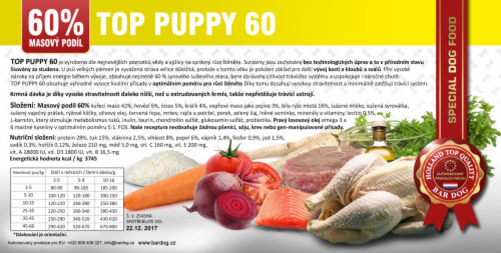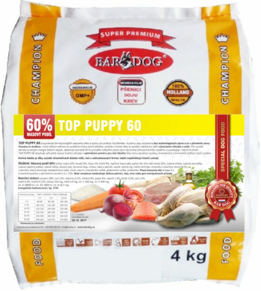Bardog Top Puppy 60 je za studena lisované bezobilné krmivo.