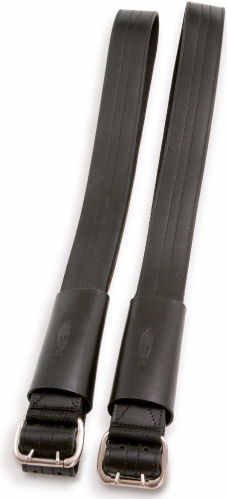 Přezky na těchto třmenech jsou na spodní straně, aby se zabránilo objemu pod vnitřní stranou stehen. Snadné nastavení ze sedla. Nylonová podšívka zabraňuje natahování. Tyto široké třmeny se skvěle hodí k použití bez návleků nebo bot, protože nebudou tlačit na spodní část nohy.