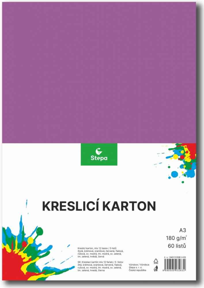 Od každé barvy je 5 archů. Barevný kreslicí karton najde uplatnění nejen ve školách, školkách, družinách ale i u výtvarníků a aranžérů.