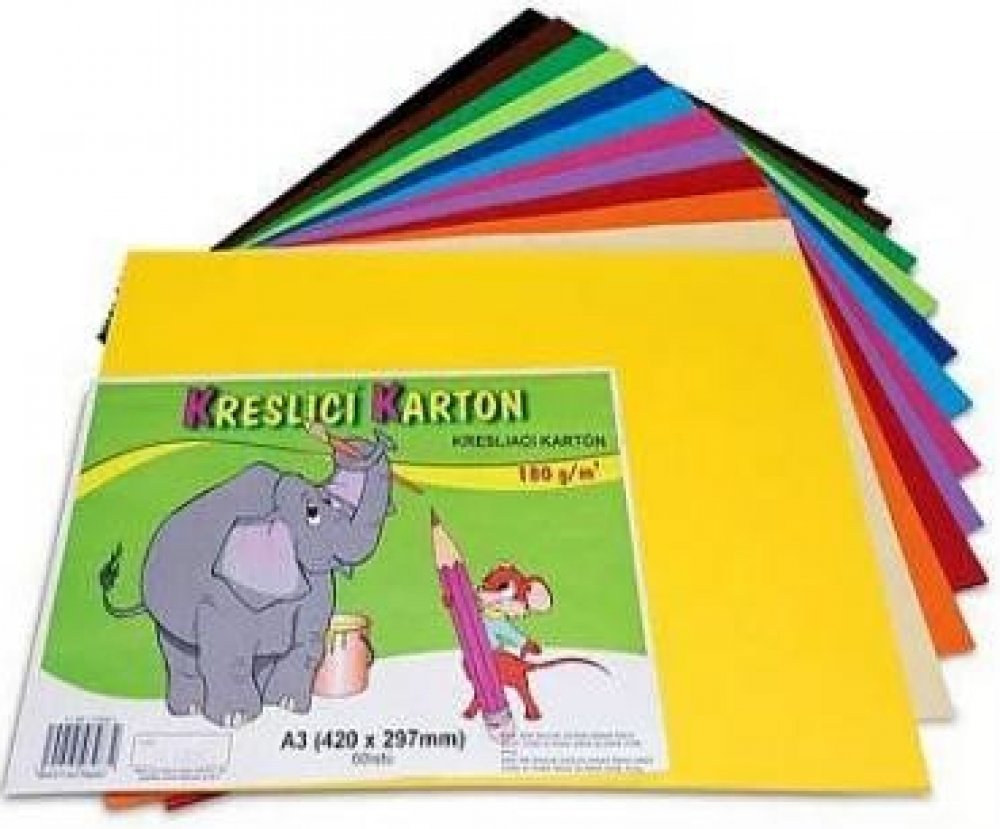 Barevná čtvrtka (barevný karton), A3, 180g/m2, mix 12 barev. Barevná čtvrtka ve formátu A3 (300x430mm) s plošnou hmotností 180g na m2 v mixu 12ti barev . Baleno po 5 kusech od barvy.Balení obsahuje tyto barvy: žlutá, krémová, oranžová, červená, fialová, růžová, sv. modrá, tm. modrá, sv. zelená, tm. zelená, hnědá, černá.