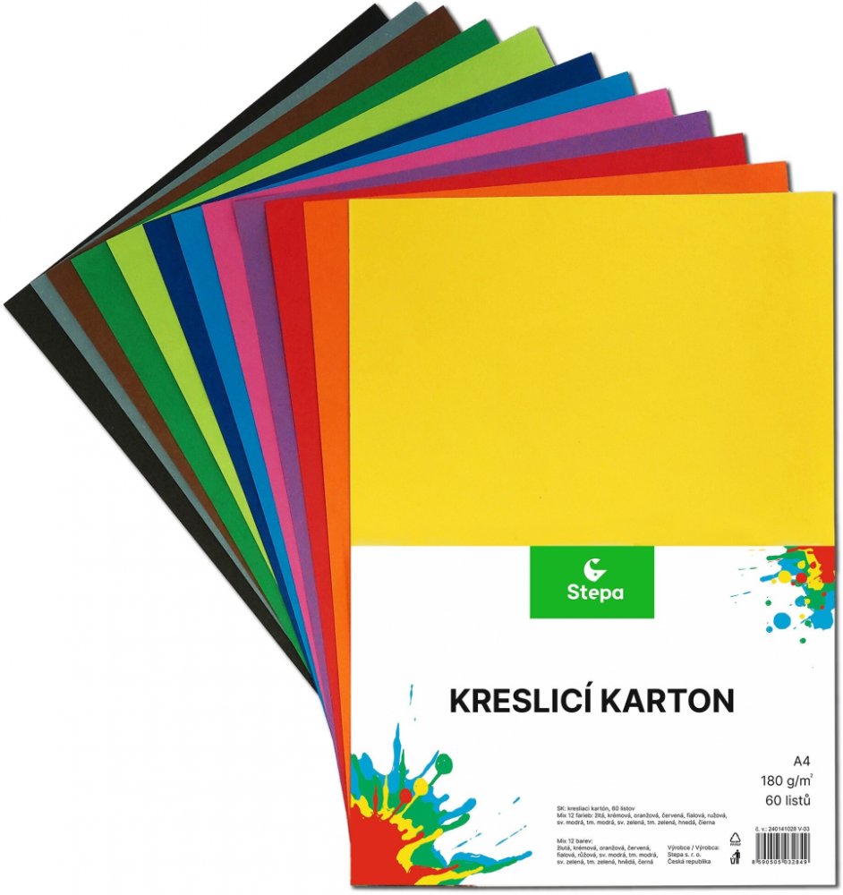 Barevná čtvrtka barevný karton A4 180 g/m2 mix 12 barev