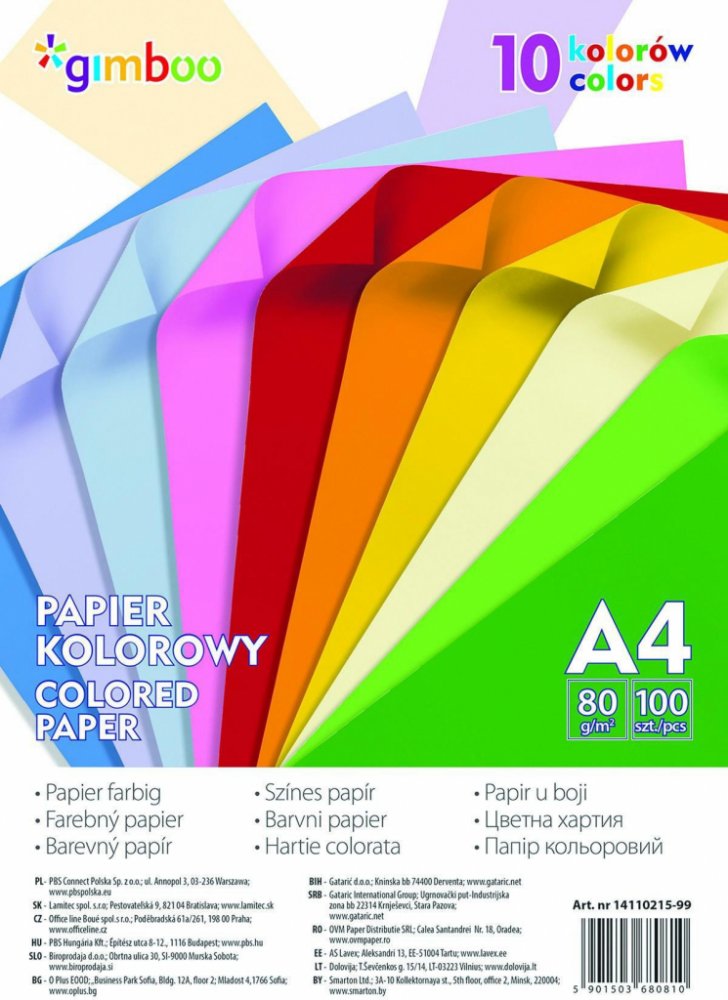 Sada barevných papírů v sytých barvách. Vhodné pro kreativní tvoření i pro tisk. Formátu A4. Počet listů: 100, gramáž papíru: 80 g. Mix barev.