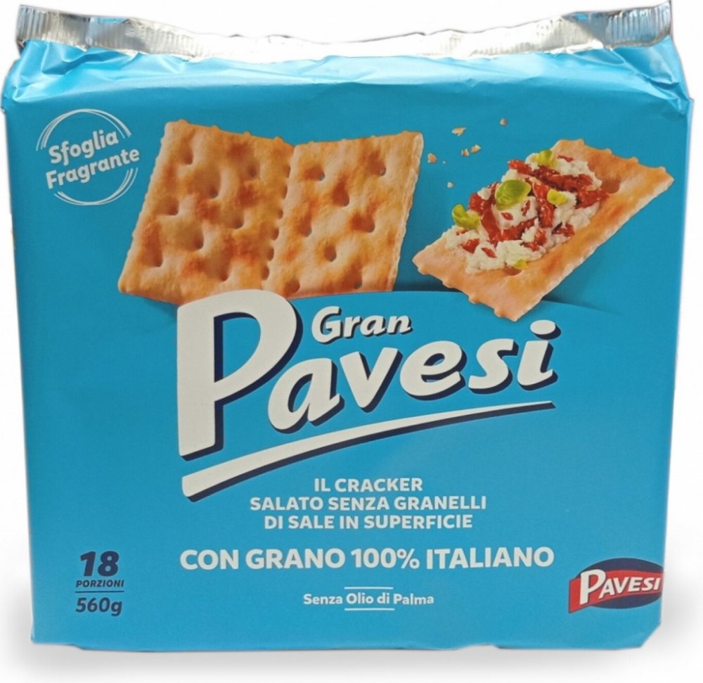 Nezaměnitelné krekry od Gran Pavesi, křupavé a chutné, verze s nižším obsahem soli nesolené na povrchu, jsou křehké, vyrobené z jednoduchých, ale kvalitních surovin, pro jedinečnou chuť, kterou si zamilujete.