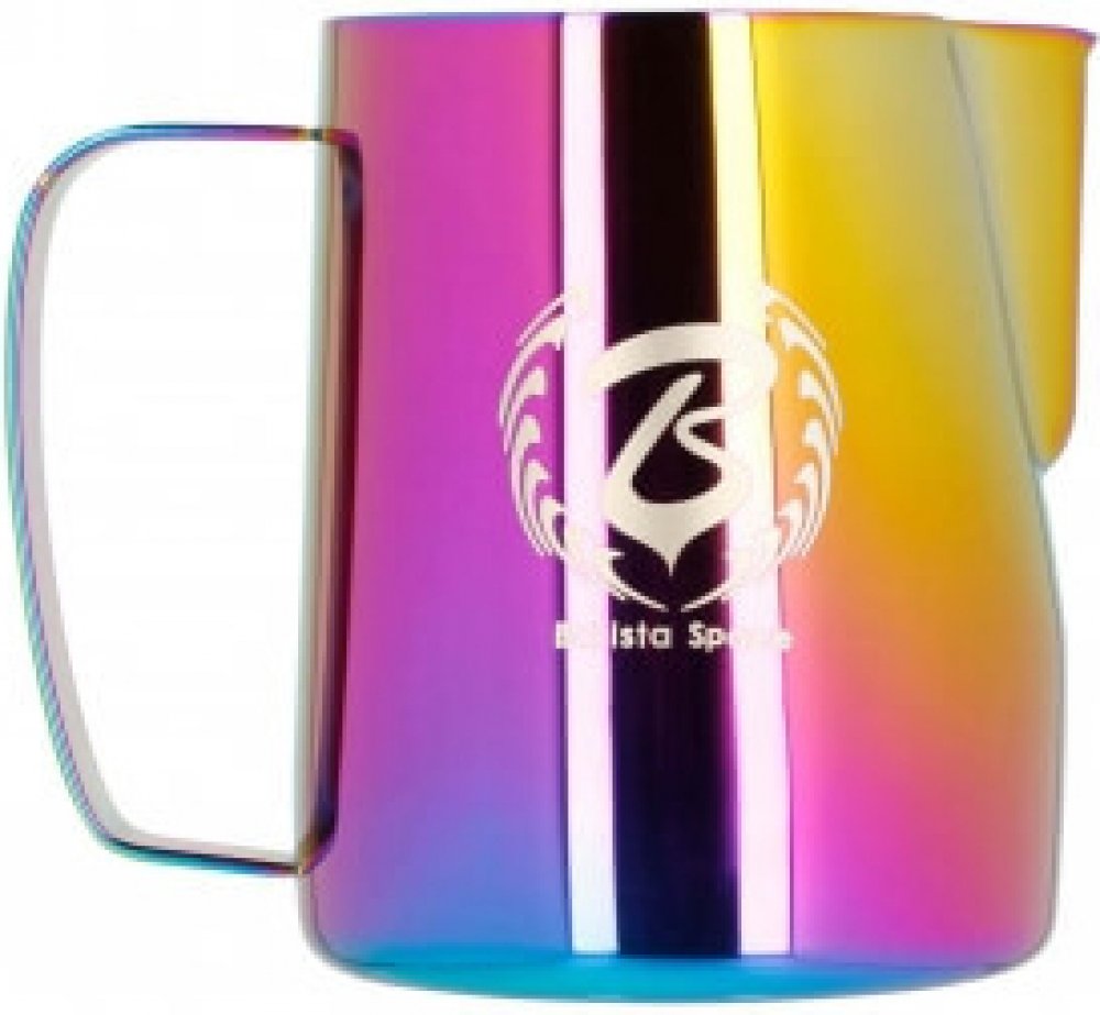 Profesionální konvička na mléko od společnosti Barista Space v duhovém provedení.