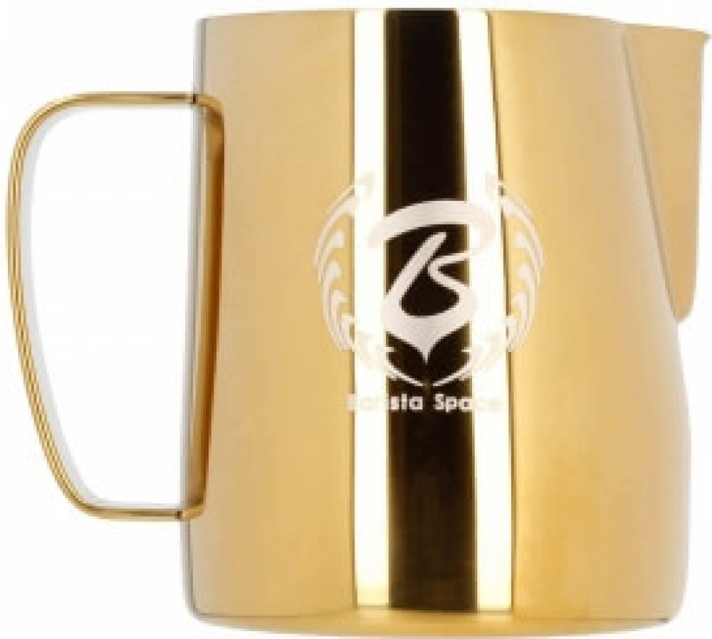 Profesionální konvička na mléko od společnosti Barista Space ve zlatém provedení.