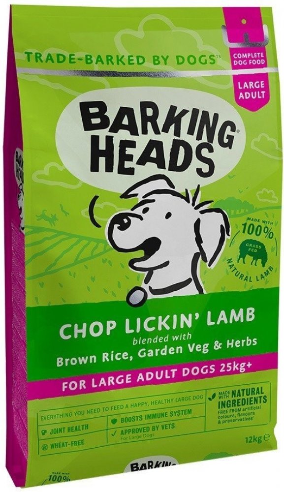 Superprémiové krmivo BARKING HEADS jehněčí s hnědou rýží pro dospělé psy velkých plemen. Bez přidaných umělých barviv, příchutí či konzervantů.
