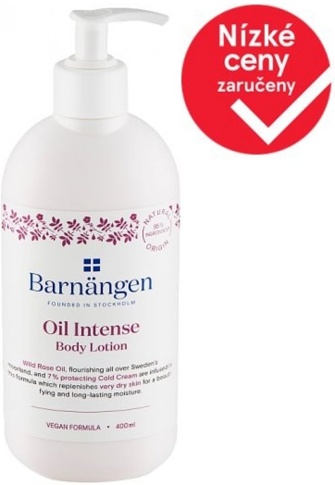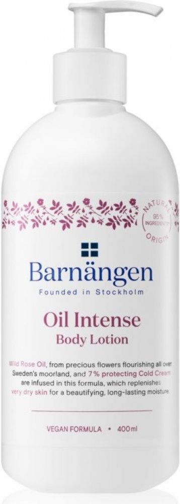 Informace o výrobku Zažijte naše Oil Intense tělové mléko. Kombinace růžového oleje z divokých rostlin, které pokrývají švédská vřesoviště, a 7% ochranného Cold Cream v jednom složení, které pečuje o velmi suchou pokožku pro dlouhotrvající hydrataci. 95% ingrediencí přírodního původu.* *včetně vody. Informace o značce Inspirujte se švédskou přírodou a tradicemi. Značka Barnängen, založena v roce 1868, je známá pro svou základní ingredienci, Cold Cream, který nabízí ochranu pokožky, díky níž se budete cítit prostě skvěle. Dermatologicky testováno Bez silikonů Veganská receptura