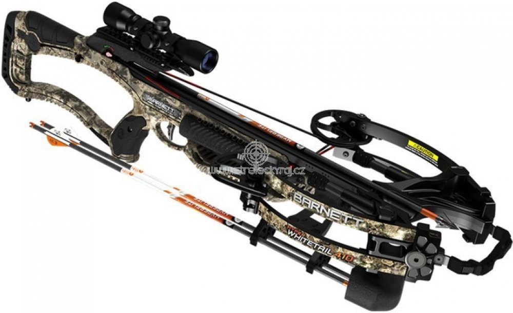 Kuše Barnett Hyper Whitetail 410Firma Barnett se vyznačuje kvalitním zpracováním a vysokým výkonem svých kuší. U modelu Hyper Whitetail 410 také velmi kompaktními rozměry a praktickým taktickým vzhledem.Kuše Barnett Hyper Whitetail 410 má velmi silná Quad ramena. Síla nátahu činí 190LB. V kombinaci s patentovanými CNC kladkami takto vytvořené lučiště předá šípu rychlost až 410 FPS, 125 m/s. Pro snazší představu je to přibližně 450 km/h. Lučiště má v napnutém stavu pouhých 233 mm a ve volném stavu pak 476 mm.Celý tento systém s rameny a kladkami je na pažbu kuše posazen a zajištěn jedním středovým šroubem tzv. One Bolt Assembly. Jednoduché a funkční. Odlehčená otevřená konstrukce pažby modelu Hyper Whitetail 410 s kvalitní CAMO úpravou Mossy Oak Terra Bayou tuto kuši hezky doplňuje. Součástí pažby je také kryt prstů, který vás ochrání před pohybem tětivy.Dalším funkčním taktickým prvkem jsou dva tlumiče - dorazy tětivy, které chrání lučiště před nežádoucím pohybem tětivy po výstřelu a také snižují hlučnost výstřelu.Na lištu 22mm v horní částí můžete posadit dodávanou optiku s parametry 4x32 s vícebodovou osnovou.O samotný výstřel z kuše Barnett Hyper Whitetail 410 se stará kovový spoušťový mechanismu prémiové kvality Trigger Tech. Zajištění proti náhodnému výstřelu u Barnettu nazývaném Anti Dry Fire je jako u všech modelů oboustranné a snadno dotupné pro ovládání prstem.Barnett Hyper Whitetail 410 je sportovní lovecká kuše kompaktních rozměrů s velmi dobrým výkonem. Celková délka kuše 921 mm, šířka 476 mm a hmotnost jen 3 450 g. S kuší se tak velmi snadno manipuluje.Díky tomu, že v balení kuše Hyper najdete dva šípy 22" Barnett Hyperflite, ruční natahovák a optiku můžete z kuše po složení rovnou střílet. Dalším příslušenstvím je držák šípů a tuk na mazání tětivy.Nezapomeňte na to, že kuše je mechanický stroj, který potřebuje údržbu, aby správně a bezpečně fungoval dlouhou dobu. Tětivu kuše mažte tukem pro prodloužení její životnosti.VÝSTŘEL NA PRÁZDNO NEBO S POŠKOZEN