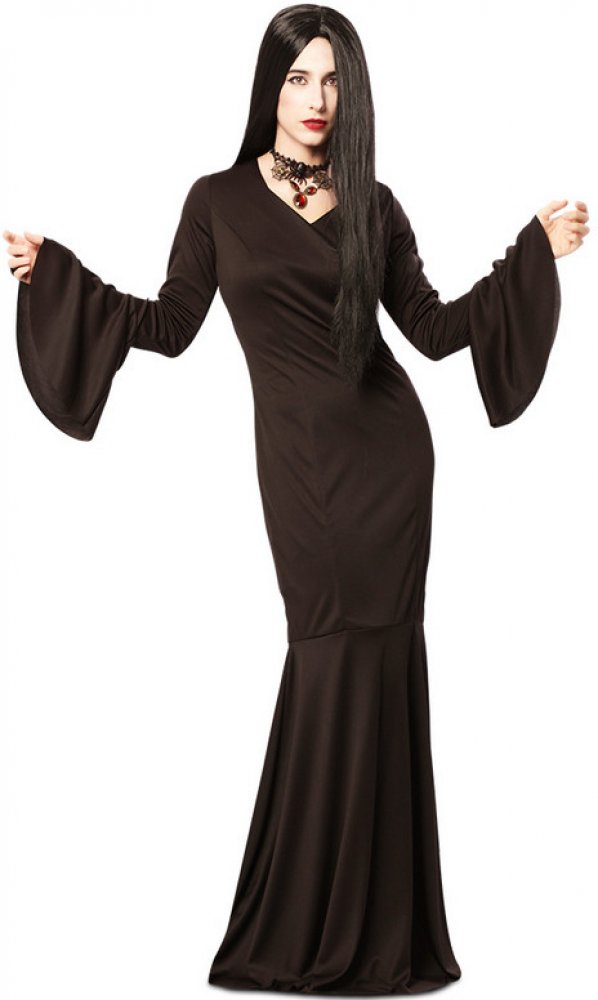 - Kostým Morticia ze seriálu Wednesday na Halloween, pálení čarodějnic a jiné oslavy či tématické párty.