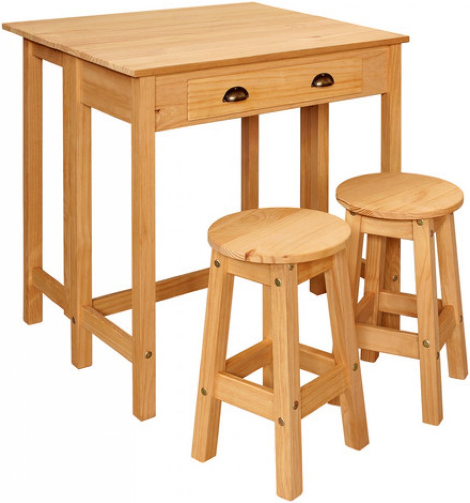 Barová sestava TAPAS vosk - materiál masiv borovice voskovaná v medovém odstínu skládací stůl se zásuvkou, dvě barové židličky rozměr složeného stolu (š/h/v) 80 × 42 × 84 cm rozměr rozloženého stolu (š/h/v) 80 × 42 × 84 cm rozměr židličky (š/h/v) 30 × 30 × 51 cm
