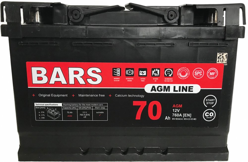 12 V 760 A Bars 18 kg (+) pól vpravo 70 Ah AGM 190 mm 175 mm 276 mm